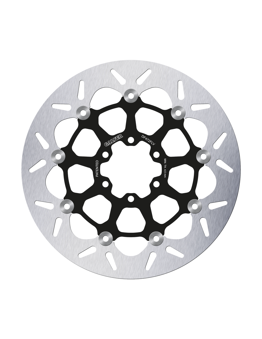Dischi freno Galfer da utilizzare con pinze di serie e di ricambio all'originale. I dischi completamente flottanti hanno fasce esterne in acciaio inossidabile con centri in acciaio rivestito di nero, e nottolini in acciaio inox. Si raccomanda vivamente di installare nuove pastiglie con un nuovo disco freno.