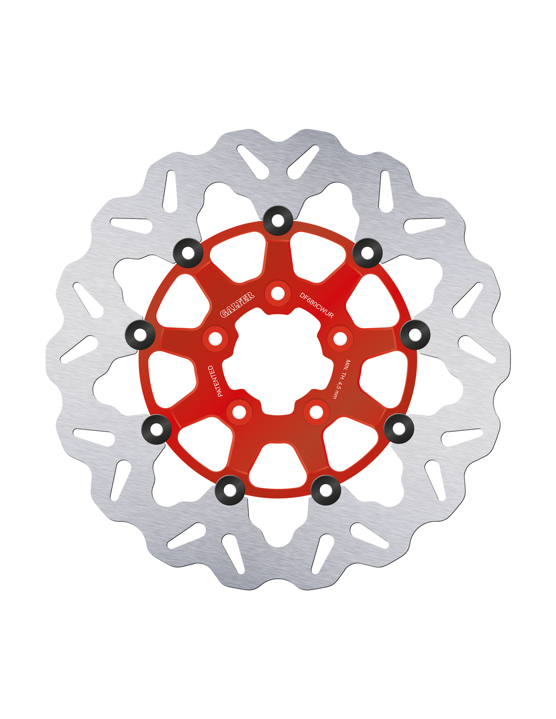 Galfer Performance BrakesAnteriore V-Rod 2007-2010 con cerchi a raggi, Dyna 2006-2007 con dischi montati su mozzo, Sportster 2014-2022, FLHR & FLHRC Road King 2008 a oggi, Touring 2008-2013 e Softail 2015 a oggiIl disco montato su mozzo ha un diamentro esterno di 11.8" (300mm), diametro interno 2 7/32" e cinque fori scalinati da 5/16" su una circonferenza di 3 1/4", Disco flottante Wave, parte centrale rossa