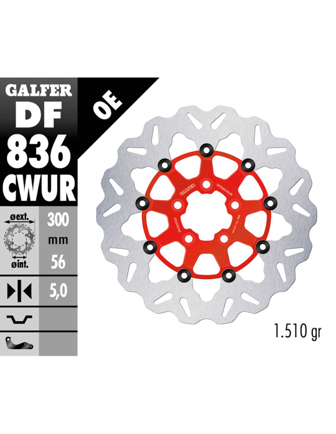 Galfer Performance BrakesI dischi flottanti Galfer Wave offrono una frenata precisa ed efficiente e un notevole risparmio di peso. Se non diversamente indicato, sono dotati di nottolini in acciaio inox neri che fissano la pista frenante in acciaio inox alla parte centrale in alluminio. Sono utilizzabili con pinze di serie e di ricambio. Sono venduti singolarmente, ordinarne due per applicazioni a doppio disco. Come per ogni disco freno, si raccomanda vivamente di installare nuove pastiglie freno con un nuovo disco freno.