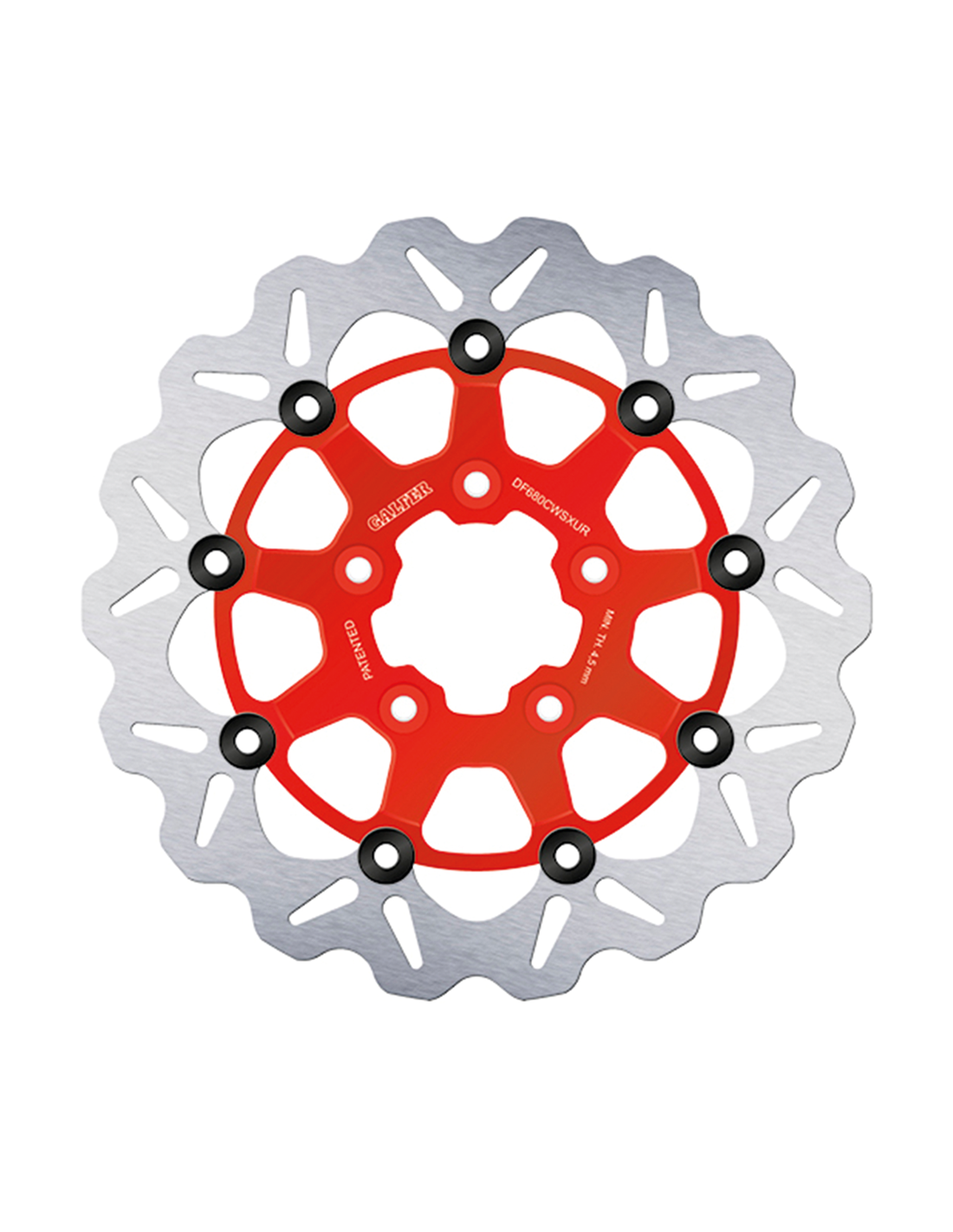 Galfer Performance BrakesDischi a 5-fori con montaggio su mozzo, anteriori per molti modelli 2000 in poiDischi hanno un diametro interno di 2 7/32" e fori di montaggio scalinati 5 x 5/16" x 3 1/4", Disco flottante Wave con parte centrale rossa