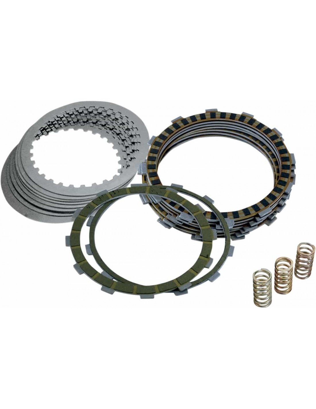 Kit dischi frizioneIl set comprende nove dischi frizione in aramide, otto dischi condotti e un set di tre molle a durezza elevata Made in the USA