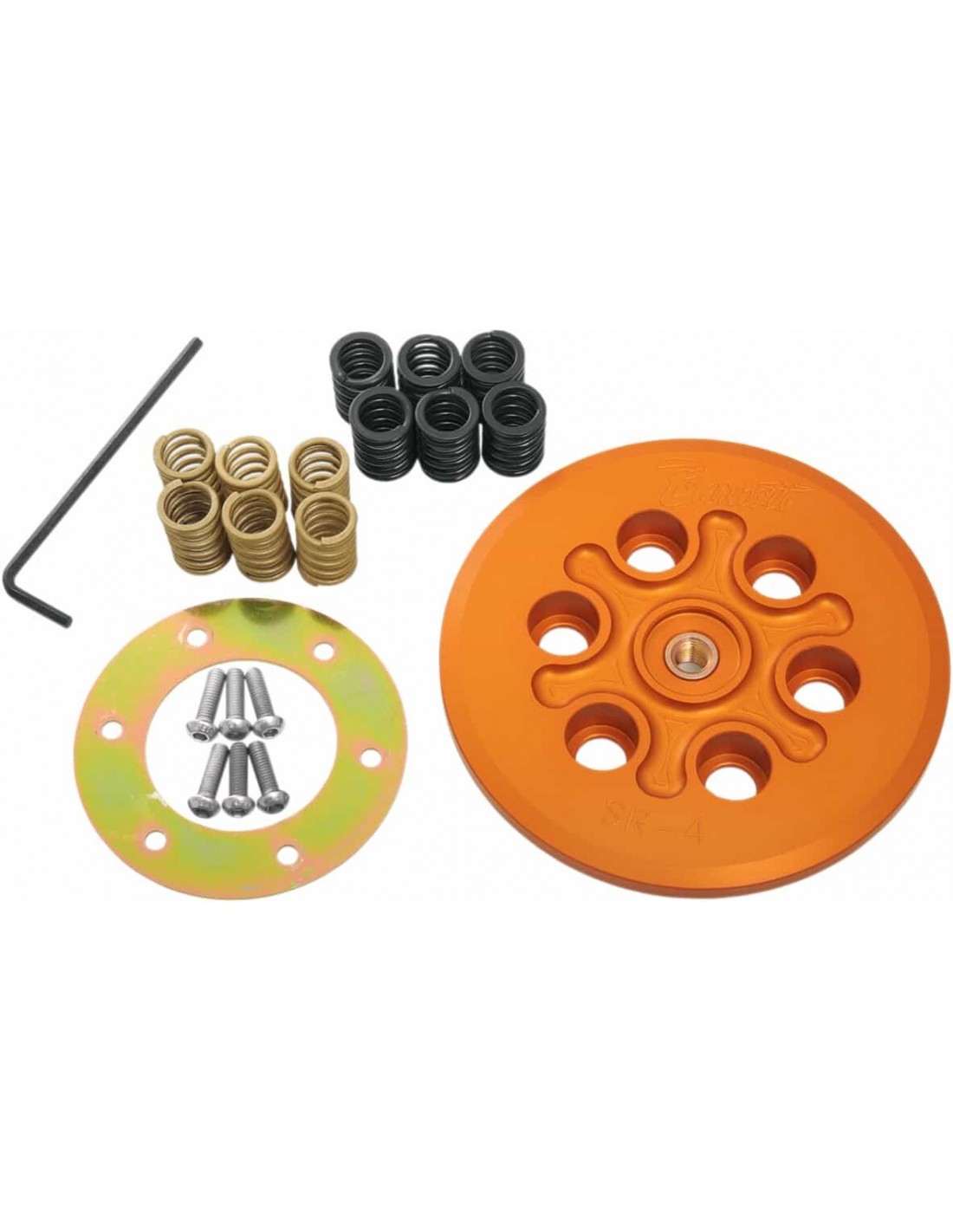 Kit di conversione molla frizionePer convertire il tuo sistema frizione con molle a diaframma in un sistema a sei molle elicoidali Piatto di pressione in alluminio billet lavorato a CNC< /li> Ideale per i motori di serie così come per quelli ad alte prestazioni Consente una regolazione più precisa e un funzionamento più fluido Aumenta la capacità di tenuta della frizione Include due set di molle elicoidali per fornire tre opzioni di pressione possibili Possono essere utilizzati il mozzo, il cestello ei dischi frizione originali Made in USA Non compatibile con modelli Harley-Davidson 2013-2019 dotati di primaria sottile.