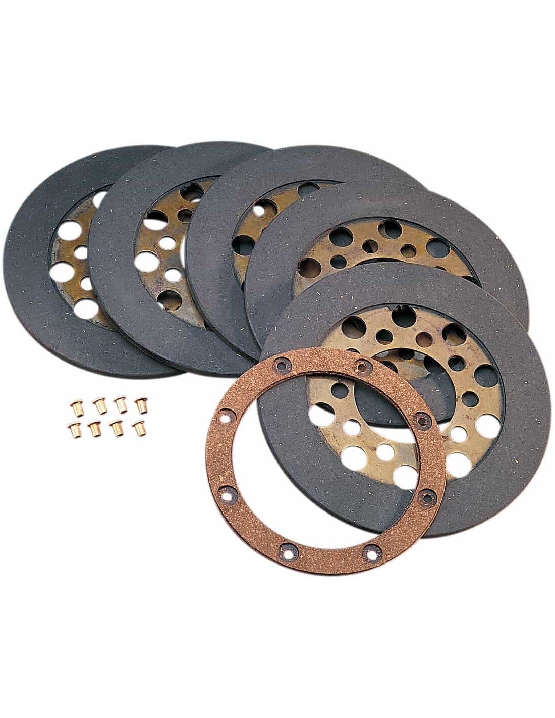 Drag SpecialtiesSet dischi per frizione a secco oa bagno d'olioFunzionamento a secco oa bagno d'olio; soddisfa o supera tutte le specifiche OEM Contiene (5) dischi frizione e (1) rivestimento interno mozzo con rivetti