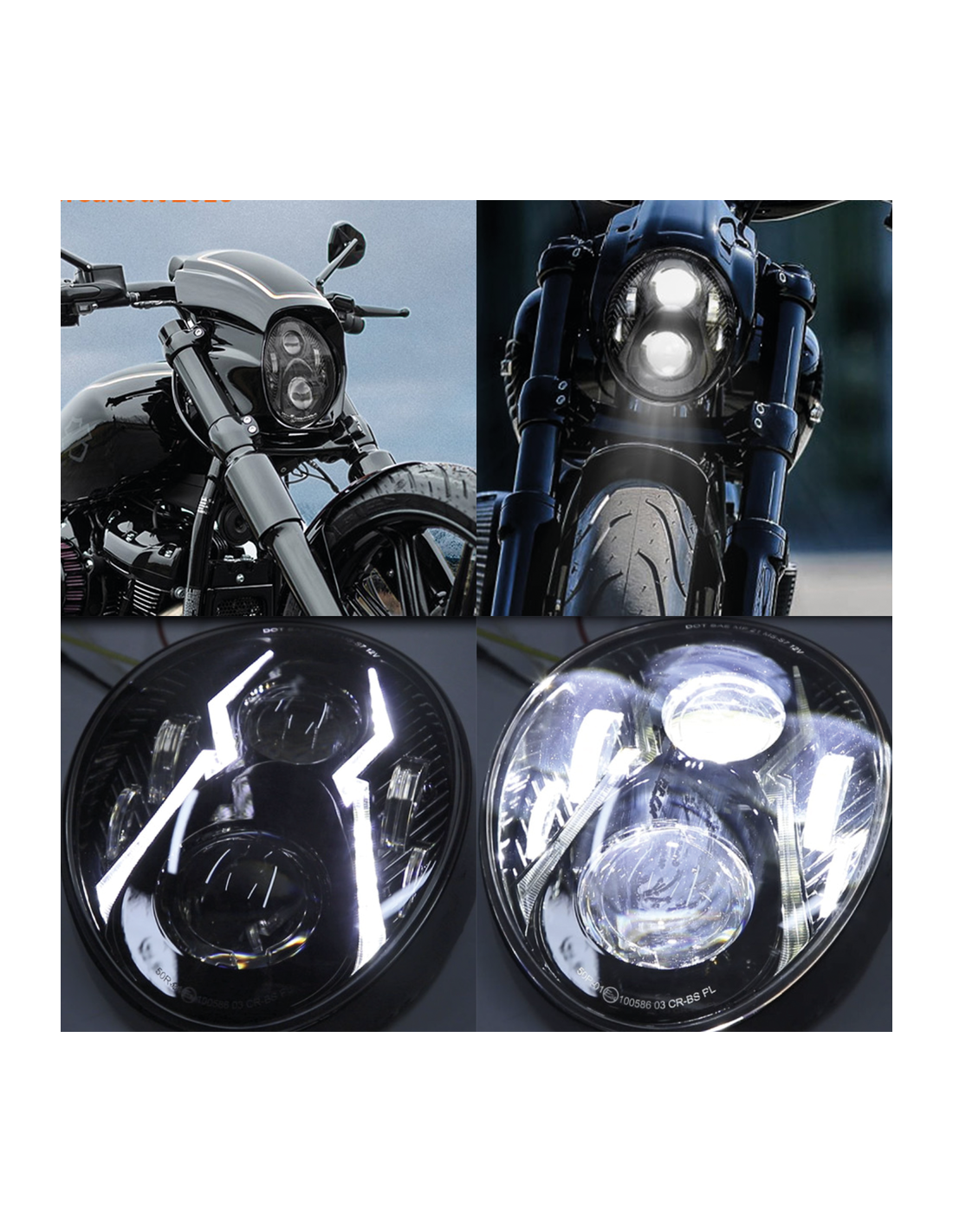 Ricambio diretto del faro ovale OEM su FXBR Softail Breakout 2018 a oggi. L'alloggiamento e l'unità sono in un unico pezzo e sono impermeabili IP67. Le dimensioni di 182mm di altezza, 155mm di larghezza e 96mm di profondità lo rendono ideale anche per uso custom. L'unità è dotata di LED bianchi super luminosi da 6500K resistenti agli urti e alle vibrazioni per gli abbaglianti, gli anabbaglianti e le luci di marcia diurna (DRL), di lenti in policarbonato infrangibili e di omologazione E.