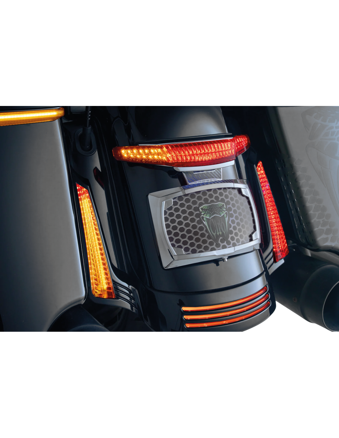 Uno dei modi più radicali per personalizzare il parafango posteriore che consente di controllare queste luci con l'app gratuita Lightstrike di Ciro per oltre un centinaio di combinazioni di illuminazione diverse con gli accessori Lightstrike. La luce a led plug and play sostituisce l'intero gruppo ottico OEM con luci di marcia e stop rosse, gli indicatori di direzione sono rossi in stile USAo ambra selezionabili dall'app. Le luci sono dotate di un supporto unico per targhe americane di dimensioni 7“ x 4” (178 x 102 mm) con fissaggi nascosti per trasformare la parte posteriore della moto. Le luci non sono approvate dall'UE.