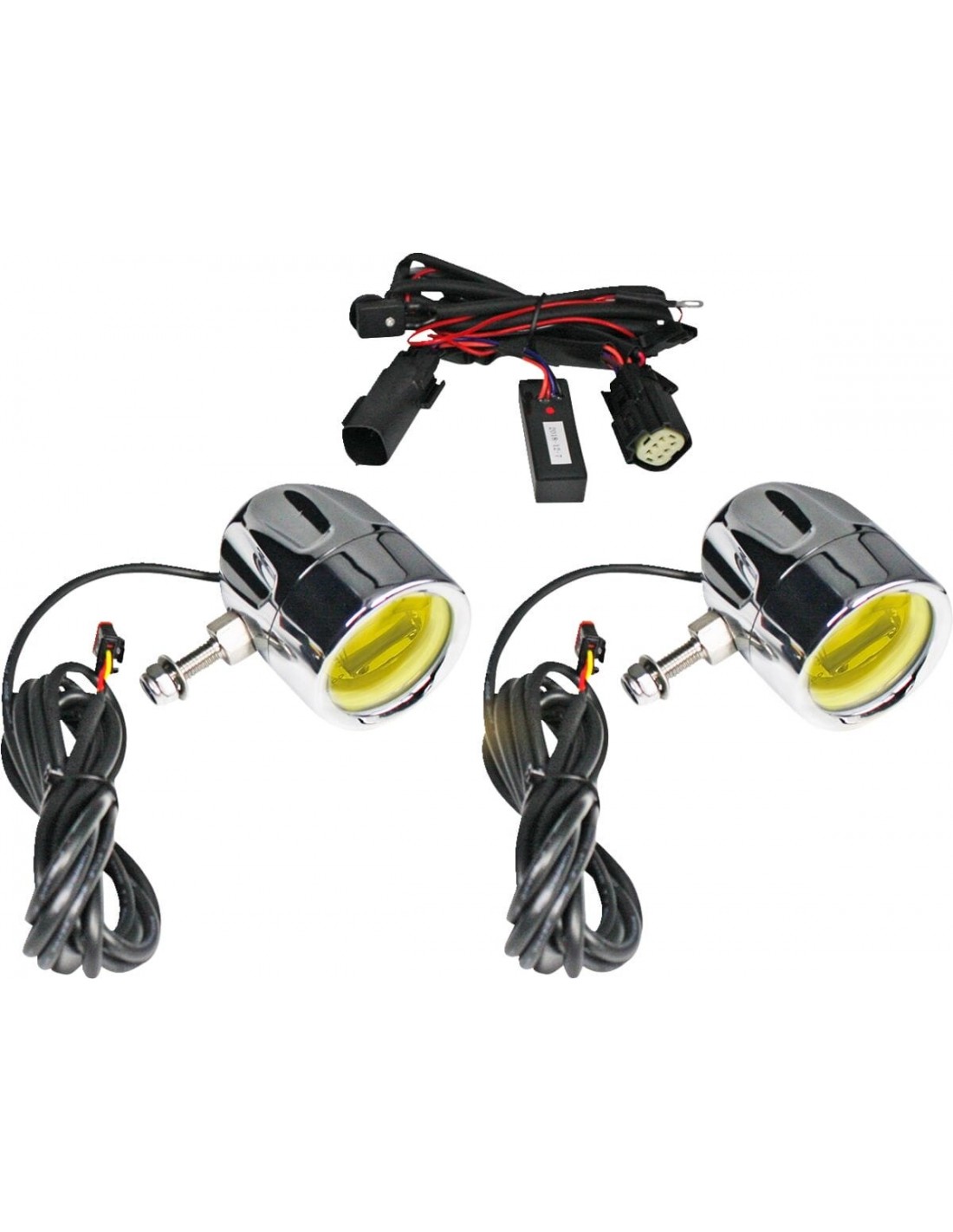 Fendinebbia probeam® led haloi led cree producono un fascio luminoso superiore con un alone led bianco super luminoso per un'emissione luminosa estrema la lente gialla in policarbonato riduce i riflessi per massimizzare la visibilità in condizioni di guida difficili i fendinebbia si montano facilmente sulle protezioni del motore da 1,25" con i morsetti di montaggio accessori probeam® codice articolo 2040-2345 o 2040-2346 (venduti separatamente) cavo plug and play cablaggio con interruttore on/off integrato incluso compatibile con morsetti di montaggio 2040-2345 e 2040-2346 (venduti separatamente) o supporti pinza 2040-3023 e 2040-3024 (venduti separatamente) .