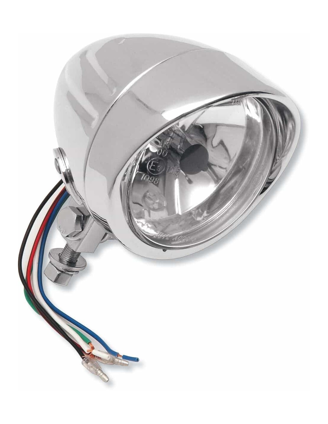 Drag SpecialtiesLuci ausiliarie da 4-1/4" con luce di marciaPresentano un alloggiamento cromato con una lampadina H4 da 55/60 W Includono anche un'ulteriore luce di marcia a bassa intensità da 5 W Con omologazione ECE (non DOT)