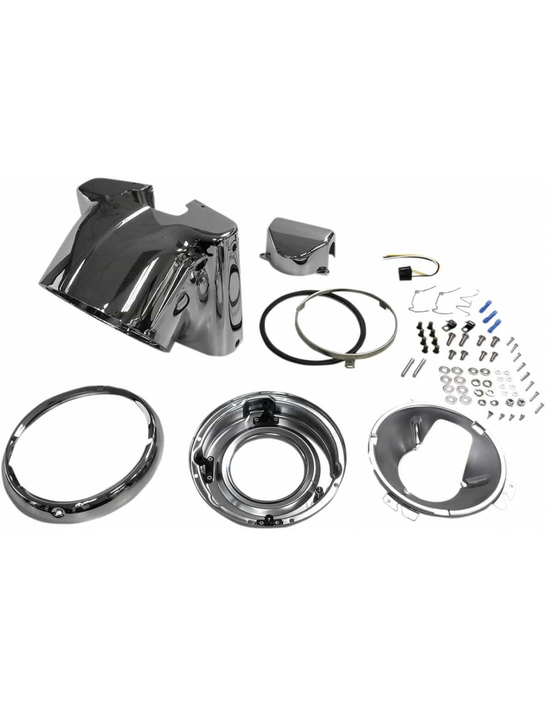 Drag SpecialtiesKit fari nacelleAlloggiamento in alluminio pressofuso realizzato in due pezzi Ricrea il look nostalgico dei modelli 1960s FL Copertura per morsetti manubrio, attacco del faro, anello decorativo e tutte le altre parti necessarie e la minuteria inclusa per un'installazione completa Faro venduto separatamente