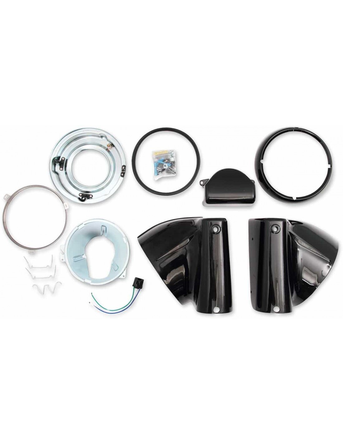 Drag SpecialtiesKit fari nacelleAlloggiamento in alluminio pressofuso realizzato in due pezzi Ricrea il look nostalgico dei modelli 1960s FL Copertura per morsetti manubrio, attacco del faro, anello decorativo e tutte le altre parti necessarie e la minuteria inclusa per un'installazione completa Faro venduto separatamente