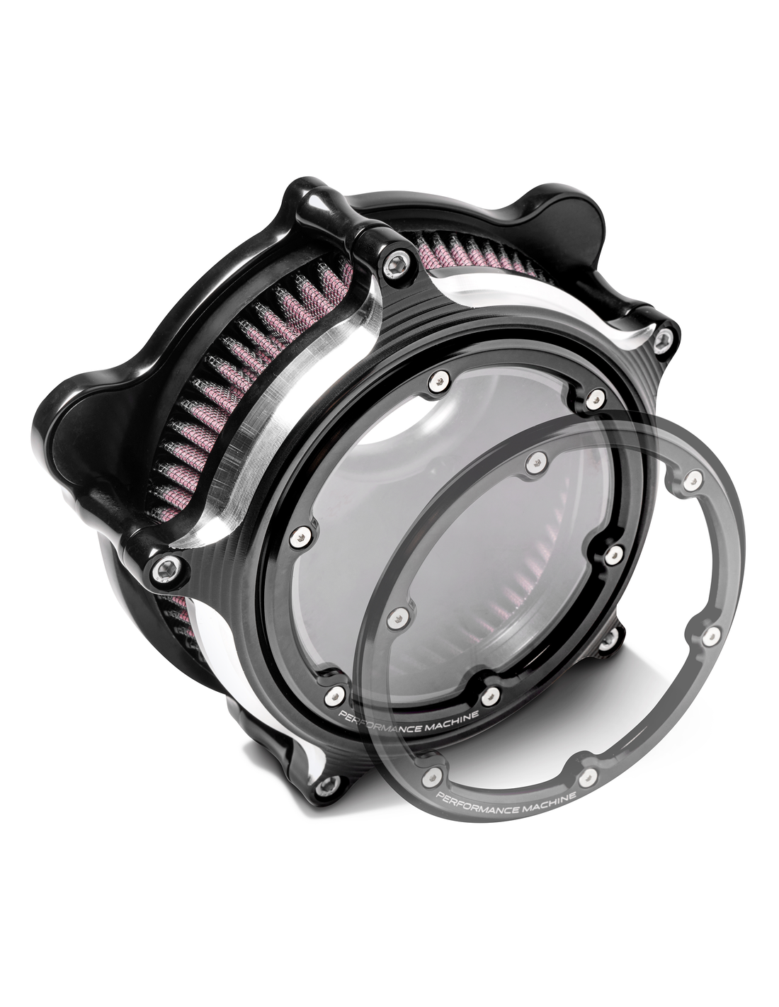 Il filtro dell'aria Vision di Performance Machine è dotato di una cornice in alluminio billet per fissare la finestra in policarbonato e per garantire l'integrità strutturale e distribuire uniformemente la forza di serraggio. Il vetro spesso e resistente ai raggi UV e all'abrasione manterrà la sua chiarezza per anni. Dotato di un elemento filtrante K&N che consente un elevato flusso d'aria con conseguente aumento della potenza.