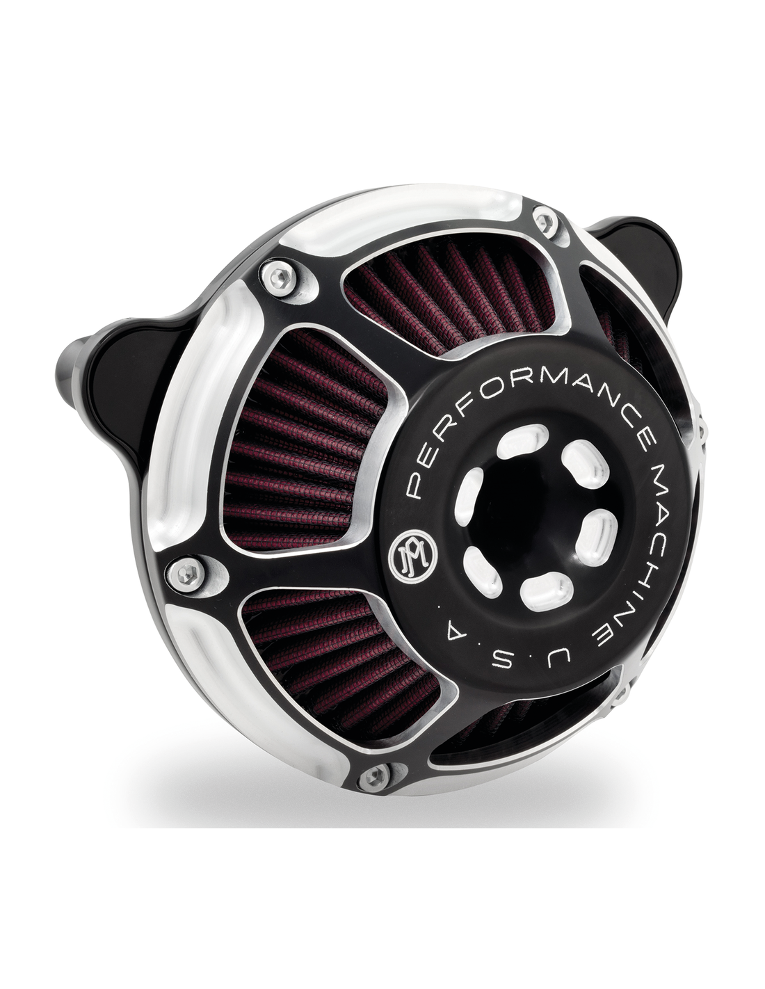Performance MachineI filtri aria Performance Machine MAX HP non sono solamente degli accessori carini ma senza sostanza. La nuova aggiunta alla linea PM di filtri aria presenta una innovativa forma conica.che lascia molto spazio al ginocchio, un cono interno per ottimizzare il flusso dell'aria e un filtro aria lavabile ad alto flusso. Il design in leggerisimo alluminio, tubi di sfiati interni in gomma per eliminare trafilaggi e una semplicissima installazione supportano il fantastico look del MAX HP. Costruiti in USA e disponibili nella versione cromata, Contrast Cut nero con tagli in alluminio grezzo o la particolare finitura di PM con due toni di nero Black Ops che si abbina perfettamente alla finitura nera dei motori Harley di serie.