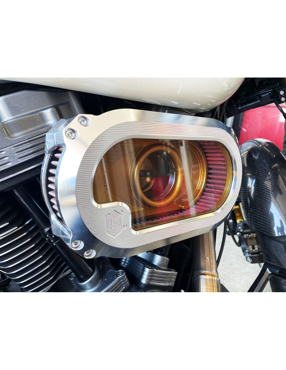 Ken's FactoryFiltri aria in alluminio che aumentano la potenza e la coppia, mentre la parte superiore in policarbonato trasparente consente di visualizzare il funzionamento del sistema di aspirazione. Dispone anche di uno sfiato interno. L'elemento del filtro dell'aria è realizzato in cotone pre-oliato ed è lavabile e riutilizzabile.