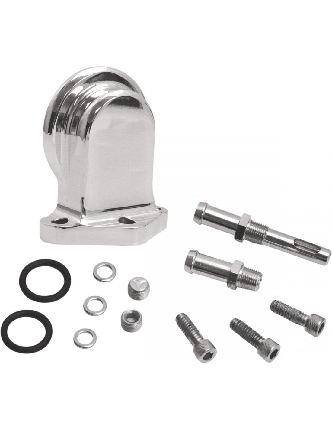 Kit staffe di montaggio filtro oliostaffa di montaggio del filtro olio in alluminio billet lucidato priva di vuoti o di altri difetti di fusione dell'alluminio che potrebbero causare perdite la posizione del filtro è stata leggermente spostata per aggiungere spazio tra il corpo del filtro e del carter per facilitare l'installazione e la rimozione sono fresati per consentire il collegamento di un radiatore olio sul lato in pressione del sistema; nel caso il radiatore non dovesse occorrere, i punti di attacco filettati possono essere chiusi con i dadi ciechi forniti, invece che con i raccordi del tu made in usa br>
