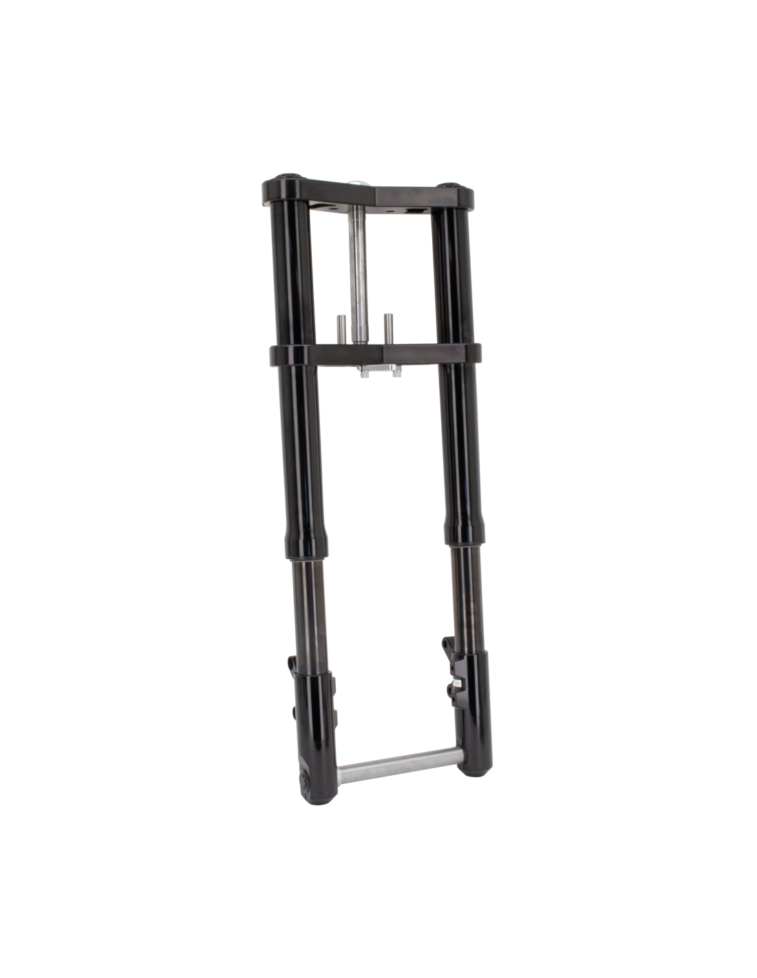 Maselli Racing SuspensionForcella completa con piastre Wide Glide in alluminio billet con inclinazione 0, 3 o 6 gradi, interasse 9.85" (250mm) e perno ruota da 25mm, Lunghezza 33 3/4" (86cm), tubi con rivestimento DLC nero, forcelle anodizzate nere con piastre Wide Glide nere inclinazione 6°