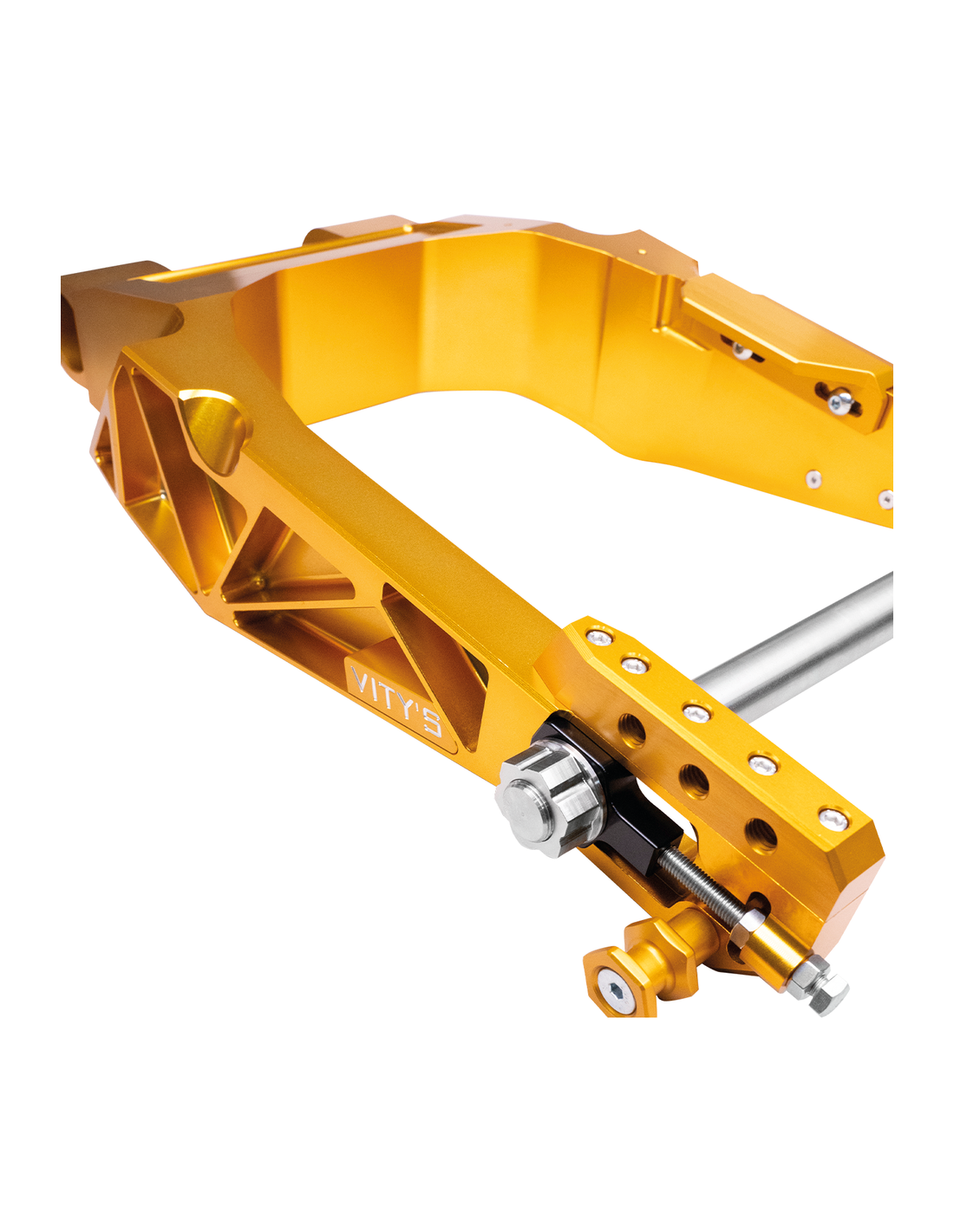 Vity's DesignQuesto forcellone in alluminio billet è più leggero e robusto di quello di serie. Aumenta la stabilità di guida e migliora il controllo. Presenta inoltre un perno e cuscinetti aggiornati. Facile da installare senza modifiche permanenti alla moto. In opzione, il forcellone può essere installato con una pinza freno radiale come le nostre pinze PM Radial mount a 4 pistoncini ZPN 743172 o 743082 e la staffa per pinza freno posteriore Vity. Le staffe del forcellone e della pinza sono lavorate a CNC da alluminio billet e sono in alluminio grezzo o con finitura anodizzata.