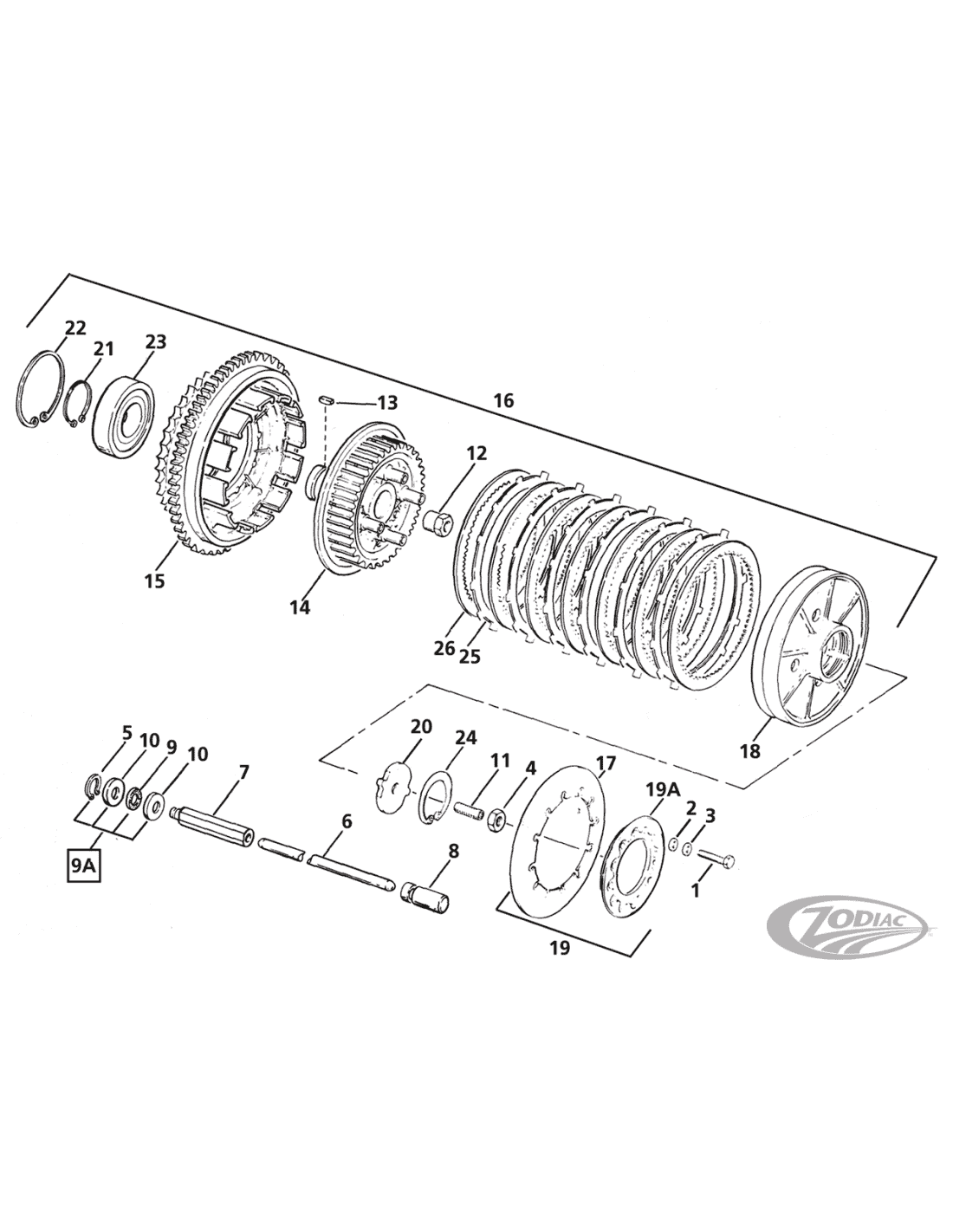 Per FXR, FXWG, FXSB e Touring 1985 e tutti i Big Twin Evolution 1986-1990 Genuine Zodiac (OEM 37707-84). Cuscinetto ordinario ZPN 239990 separatamente