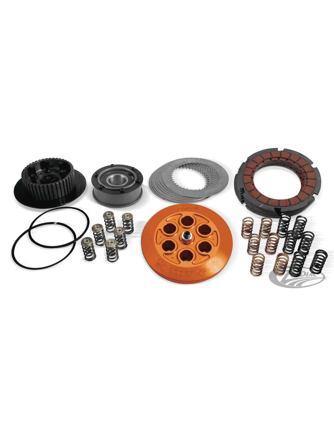 Barnett Clutches & CablesStrumento La Barnett & Engineering ha sviluppato queste frizioni in alluminio ed acciaio lavorate a CNC come parte performante per Harley. La frizione "Scorpion" ha l'area di frizione raddoppiata rispetto ad una di serie, migliora ed ammorbidisce le cambiate compresa la messa in folle. Distanziali in metallo in mezzo al pacco frizione garantiscono la non usura dell'alluminio. Questa frizione è dotata di 6 molle rinforzate al posto della molla a diaframma. In aggiunta, la Barnett include un extra set di molle per la messa a punto della frizione da uso stradale ad uso gara. La messa a punto è veramente facile e non occorre rimuovere la primaria. La frizione Barnett Scorpion è disegnata per essere usata a bagno o semi ed è compatibile con qualsiasi tipo di olio.