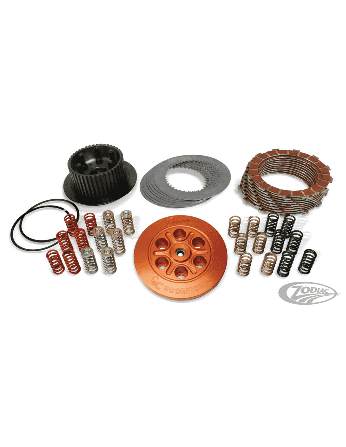 Barnett Clutches & CablesStrumento La Barnett & Engineering ha sviluppato queste frizioni in alluminio ed acciaio lavorate a CNC come parte performante per Harley. La frizione "Scorpion" ha l'area di frizione raddoppiata rispetto ad una di serie, migliora ed ammorbidisce le cambiate compresa la messa in folle. Distanziali in metallo in mezzo al pacco frizione garantiscono la non usura dell'alluminio. Questa frizione è dotata di 6 molle rinforzate al posto della molla a diaframma. In aggiunta, la Barnett include un extra set di molle per la messa a punto della frizione da uso stradale ad uso gara. La messa a punto è veramente facile e non occorre rimuovere la primaria. La frizione Barnett Scorpion è disegnata per essere usata a bagno o semi ed è compatibile con qualsiasi tipo di olio. Può essere montato con attrezzi standard, un attrezzo speciale per la rimozione del mozzo frizione Scorpion è disponibile separatamente, così come la piastra per bloccare il cestello frizione esterno al mozzo interno. Le frizioni Scorpion sono disponibili per vari modelli.
