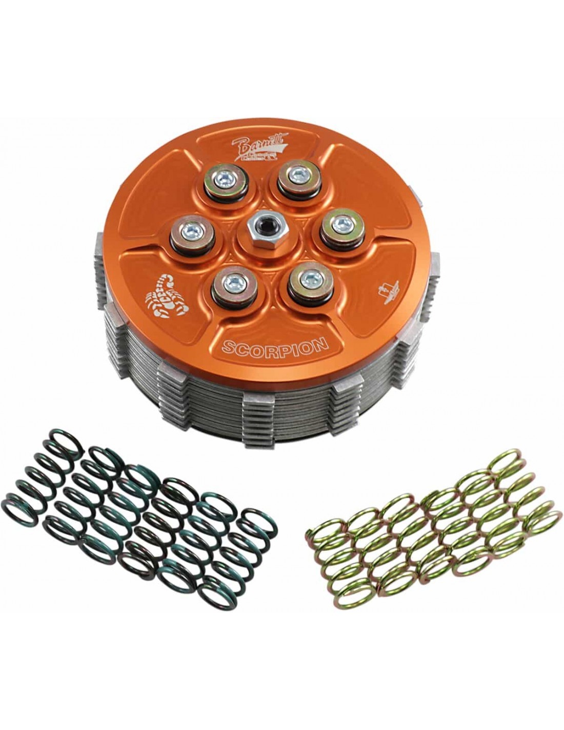 Frizione ScorpionGrande aumento della capacità frizione Assicura una cambiata di marcia più regolare e un innesto più progressivo Opzioni multiple di pressione molla< /li> Mozzo in acciaio, piatto spingidisco in billet, dischi frizione e molle elicoidali inclusi Ideata per adattarsi nel cestello di serie Ideale per i motori di serie così come per applicazioni ad alte prestazioni