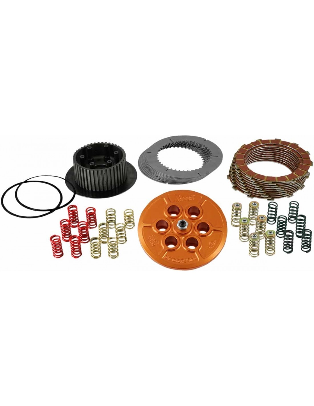 Frizione ScorpionGrande aumento della capacità frizione Assicura una cambiata di marcia più regolare e un innesto più progressivo Opzioni multiple di pressione molla< /li> Mozzo in acciaio, piatto spingidisco in billet, dischi frizione e molle elicoidali inclusi Ideata per adattarsi nel cestello di serie Ideale per i motori di serie così come per applicazioni ad alte prestazioni