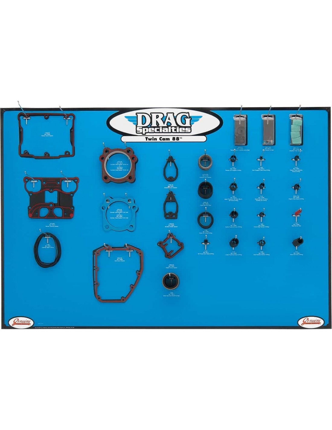 Drag SpecialtiesEspositore per guarnizioni, paraoli e o-ring per motori Twin CamEspositore completo, disponibile in quattro colori e comprensivo di tutte le guarnizioni, i paraoli e gli o-ring necessari per riparare la maggior parte parte dei motori Twin Cam (tranne i Twin Cooled) Gli espositori, realizzati in vinile adesivo spesso 20 mil, sono forniti con tutti i ganci ei contenitori che servono, nonché una lista completa di tutte le guarnizioni necessarie< /li> Si monta facilmente su qualsiasi pannello da 1/8" o 1/4" È stato progettato in modo da far stare tre espositori da 48” LARG x 32” ALT su un unico pannello da 4' x 8' Non sono incluse le guarnizioni, i paraoli e gli o-ring; viene fornita una lista degli articoli disponibili tra cui scegliere quelli che servono Made in the USA