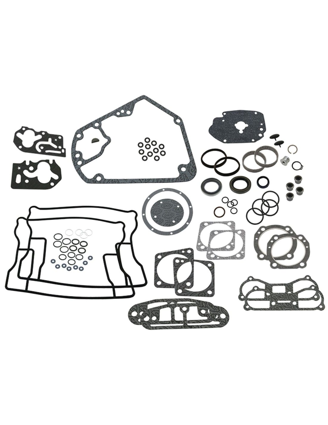 I kit S&S contengono tutte le guarnizioni ei paraoli necessari per la ricostruzione della parte superiore dei motori S&S o di qualsiasi motore che usi teste e cilindri S&S. Le guarnizioni dei coperchi bilancieri sono incluse meno dove menzionate diversamente.