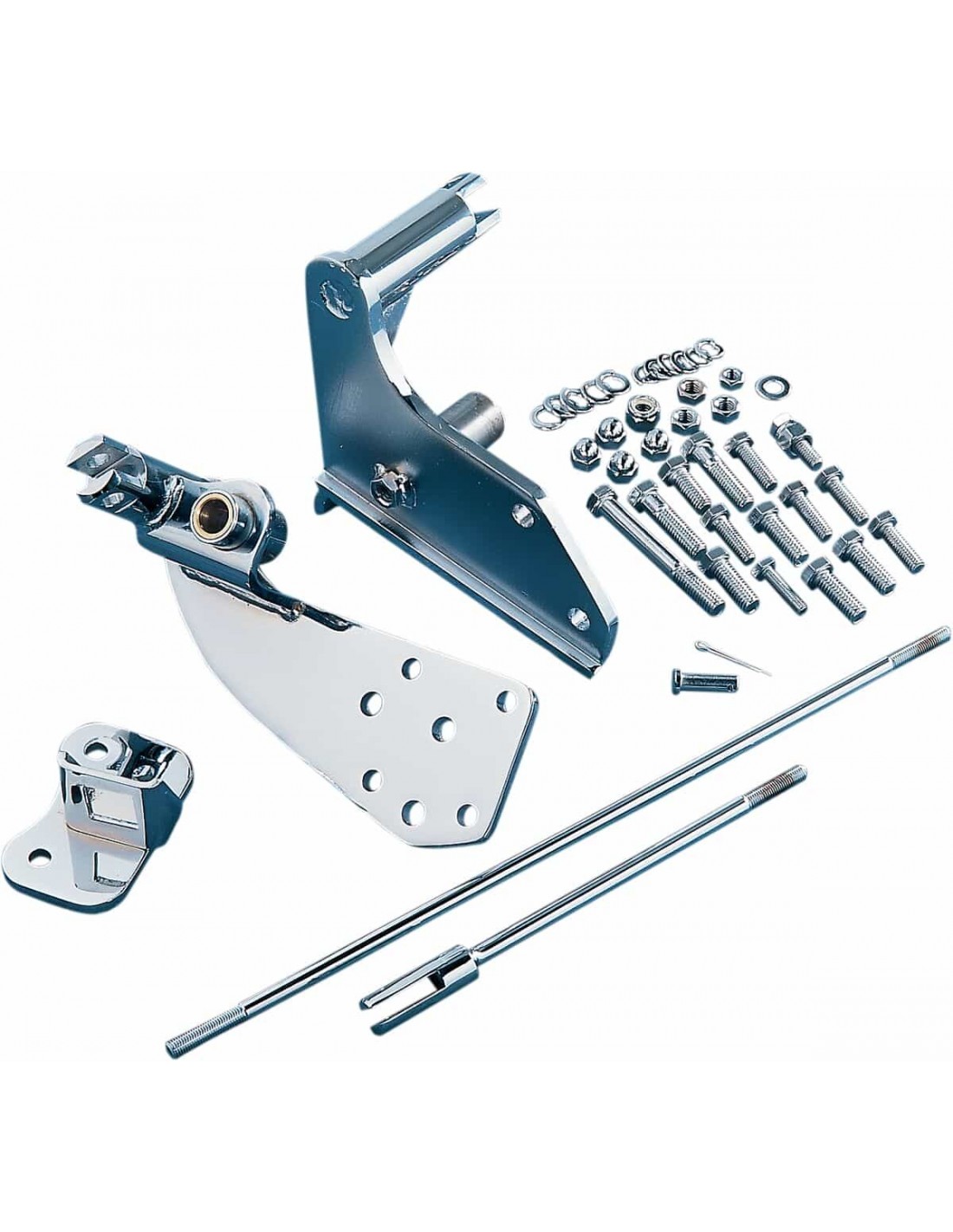Drag SpecialtiesKit di riposizionamento comandi avanzatiIl kit viene completo di piastre cambio e freno cromato e di tutto il materiale cromato necessario per il montaggio delle unità fornite complete e del cavalletto Permette di riposizionare il poggiapiedi, la leva freno e la leva cambio di circa 3" più avanti, offrendo così una posizione di guida più confortevole Vengono utilizzati il poggiapiedi, la leva freno, la leva cambio e il braccio leva cambio originale Istruzioni incluse