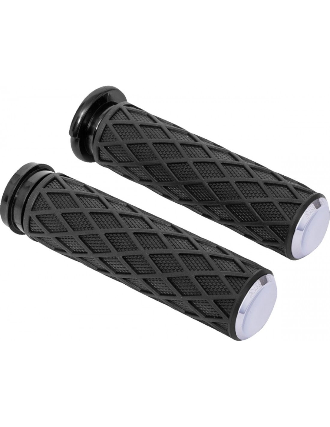 Diamond gripsimpugnature in gomma dal design a diamante con zigrinatura integrata all'interno di ciascuna tasca a forma di diamante per un look vintage con eccellente trazione della mano l'impugnatura in gomma premium è morbida e resistente. Sensazione di comfort in tutti gli scenari di guida tappucci terminali lavorati a cnc per un look rifinito logo laser arlen ness incluso su ciascun tappo terminale si installa come le manopole di fabbrica; nessuna colla necessaria per l'installazione