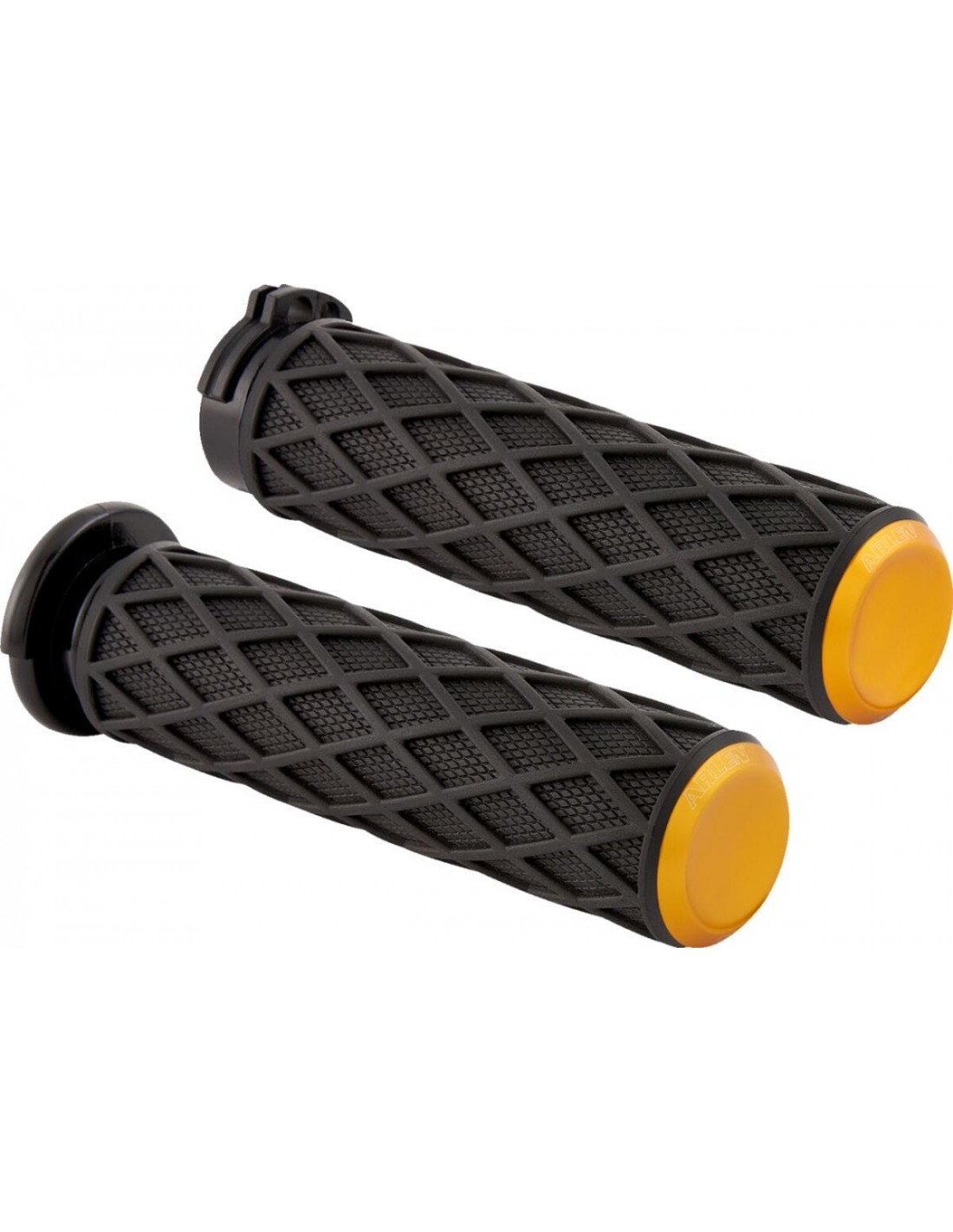 ArlennessDiamond gripsimpugnature in gomma dal design a diamante con zigrinatura integrata all'interno di ciascuna tasca a forma di diamante per un look vintage con eccellente trazione della mano l'impugnatura in gomma premium è morbida e resistente. Sensazione di comfort in tutti gli scenari di guida tappucci terminali lavorati a cnc per un look rifinito logo laser arlen ness incluso su ciascun tappo terminale si installa come le manopole di fabbrica; nessuna colla necessaria per l'installazione