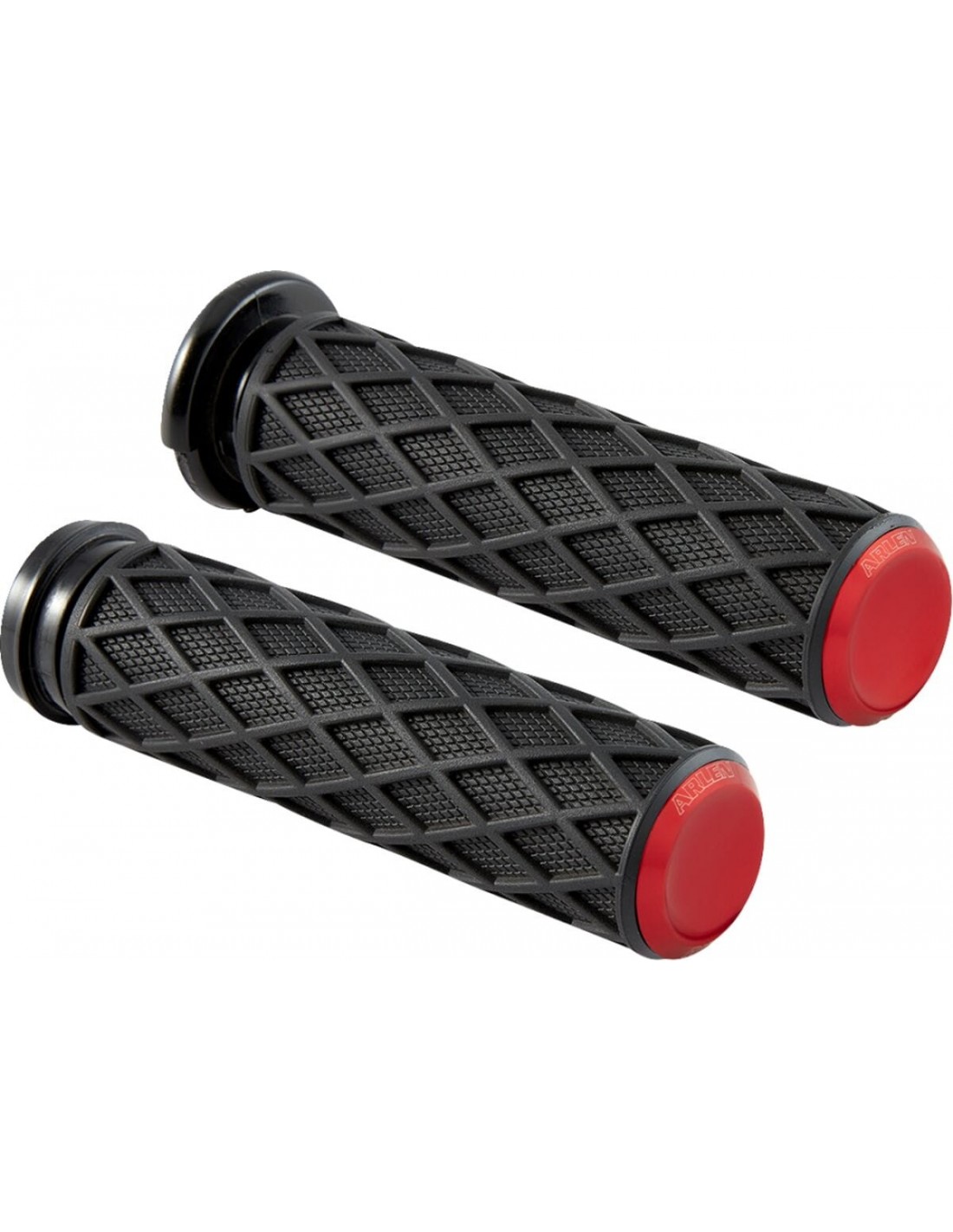 ArlennessDiamond gripsimpugnature in gomma dal design a diamante con zigrinatura integrata all'interno di ciascuna tasca a forma di diamante per un look vintage con eccellente trazione della mano l'impugnatura in gomma premium è morbida e resistente. Sensazione di comfort in tutti gli scenari di guida tappucci terminali lavorati a cnc per un look rifinito logo laser arlen ness incluso su ciascun tappo terminale si installa come le manopole di fabbrica; nessuna colla necessaria per l'installazione
