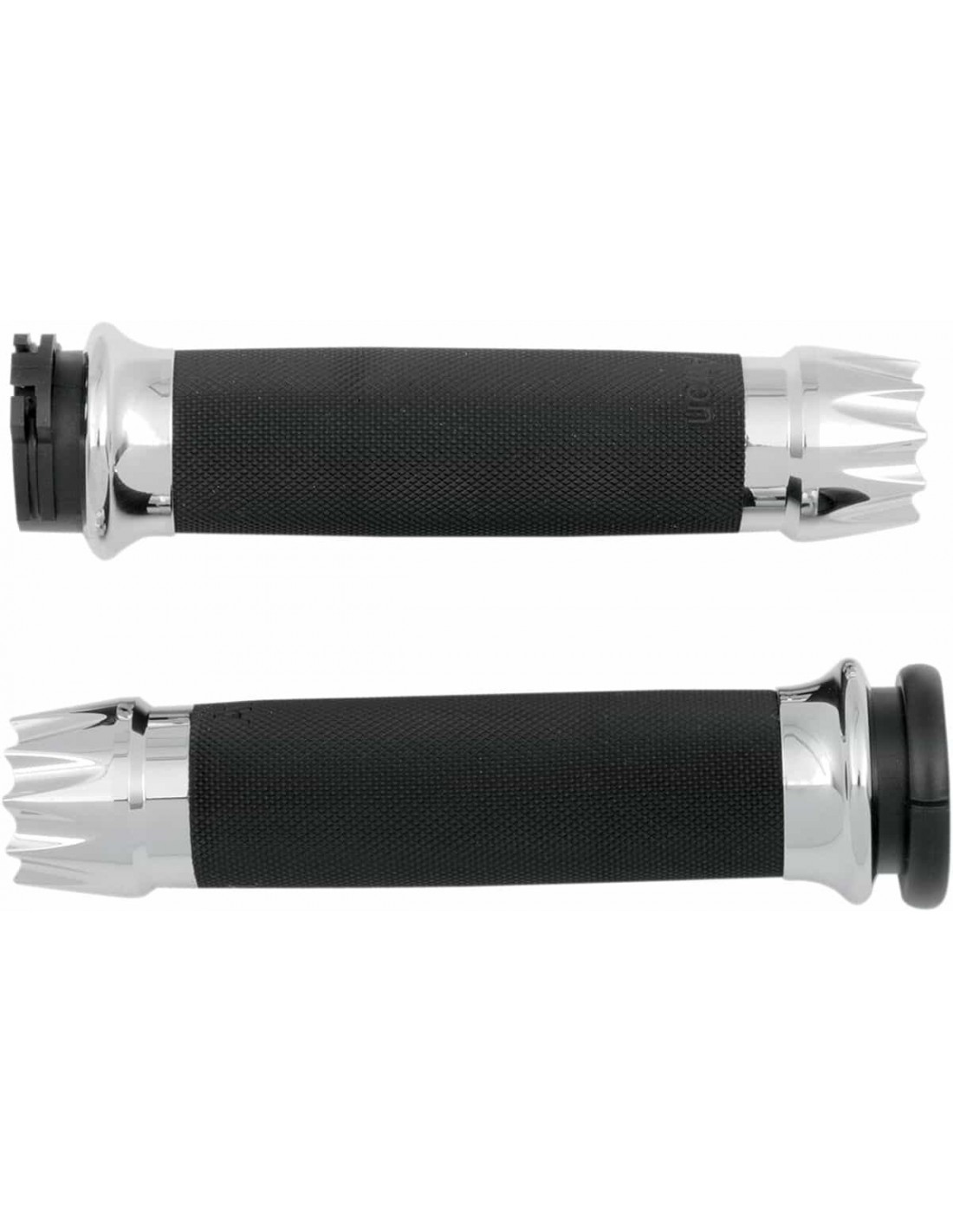 Manopole custom ExcaliburCon tecnologia ergonomica in gomma senza giunzioni Terminali e collarini in alluminio billet Poggiapiedi abbinati forniti separatamente < li>Prodotto negli Stati Uniti