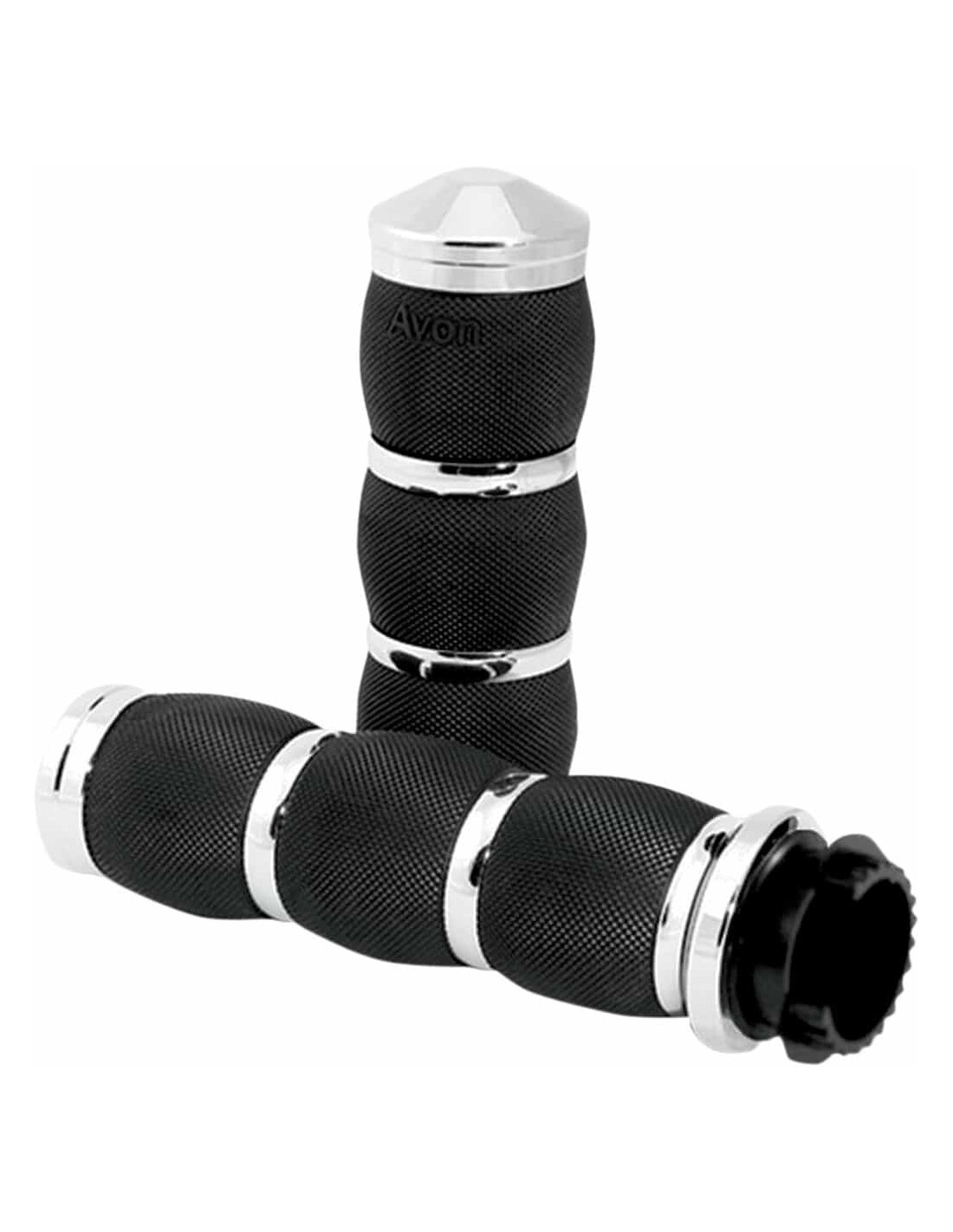 Avon GripsManopola con cuscinetti d'aria a 3 anelliCon terminali e anelli in alluminio billet e tecnologia di impugnatura in gomma senza giunzioni AVONIdeata con un materiale molto morbido, duraturo e ad azione viscosaMade in USA