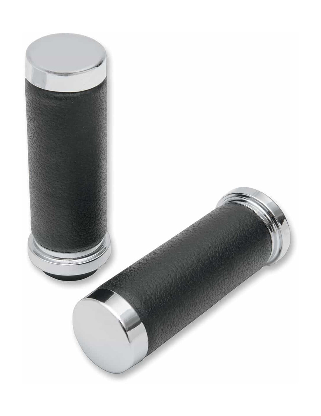 Manopole in gomma nera testurizzataPresentano uno strato sottile testurizzato in gomma nera unico nel suo genere al di sopra del manicotto in spugna Terminali cromati e tubo comando gas inclusi< /li>