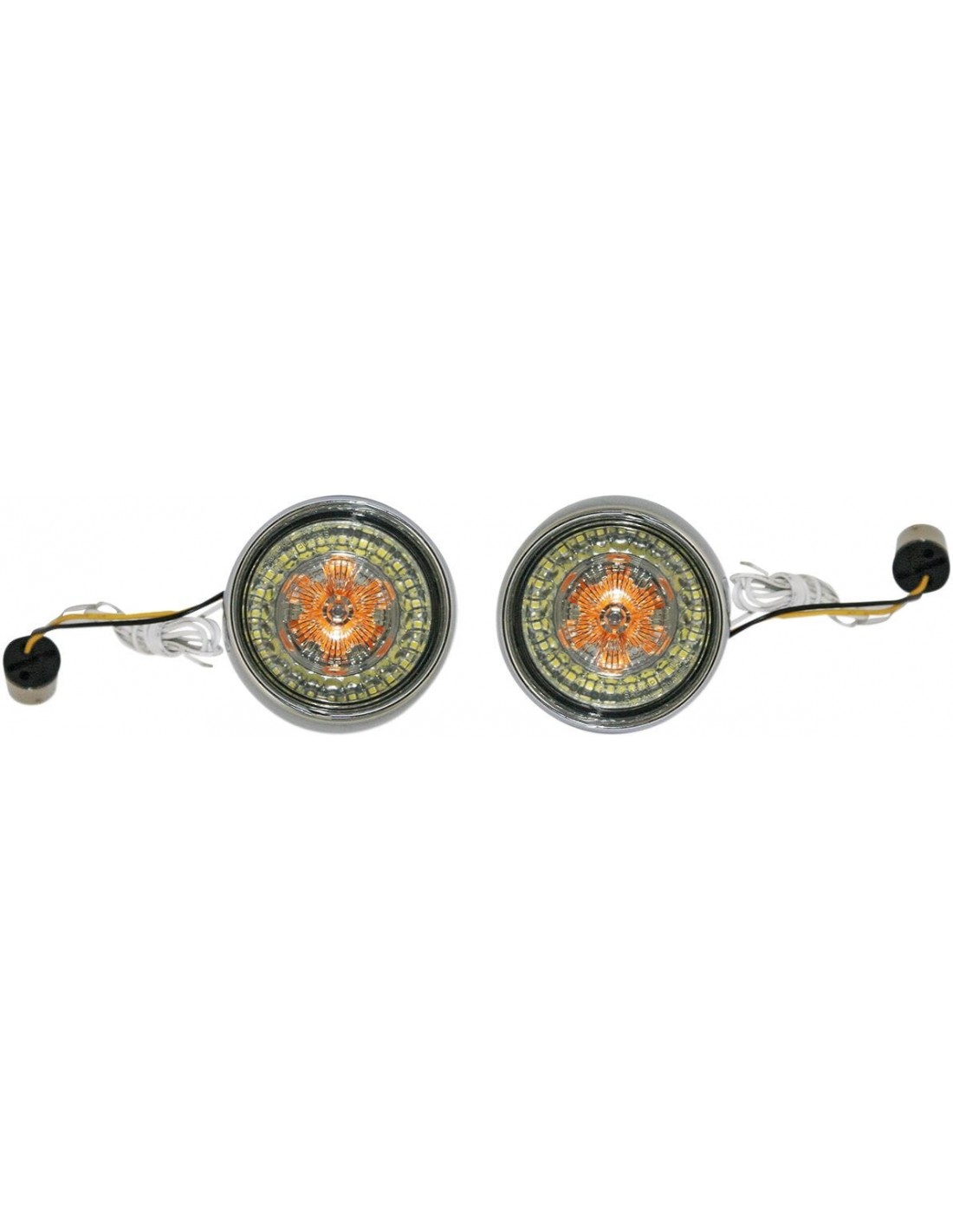 Custom DynamicsIndicatore di direzione led probeam® a ghiera ringz bulletled di qualità automobilistica contenuto in un'unità sigillata caratterizzato da un anello esterno di 24 led bianchi probeam® che emette un leggero alone di luce bianca e 12 led centrali color ambra che funzionano come indicatori di direzione solo per modelli internazionali