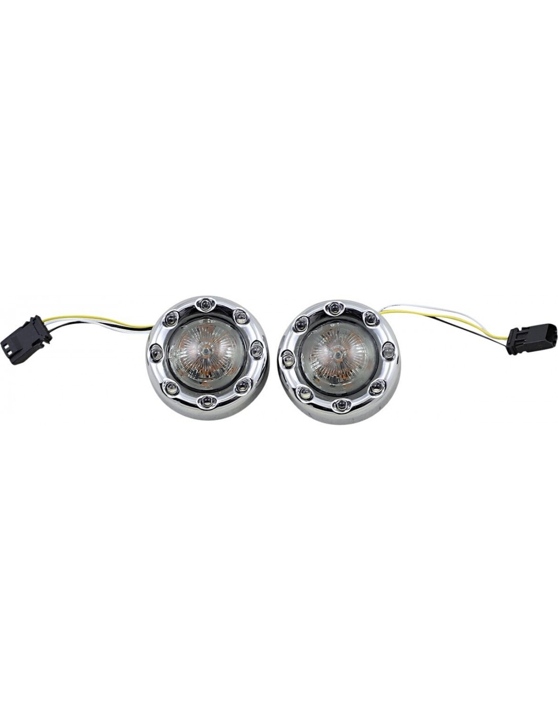 Custom DynamicsIndicatori di direzione anteriori probeam® bullet ringz™ 1157sostituzione led per indicatori di direzione anteriori oem otto led bianchi incorporati nella cornice esterna in alluminio e 12 led centrali ambrati l'anello esterno di otto led bianchi mostra un alone uniforme che funziona come luce di posizione 12 led ambrati centrali funzionano come indicatori di direzione a pieno contrasto quando l'indicatore di direzione è attivato, il i led bianchi si spengono completamente per l'intero ciclo degli indicatori di direzione fornendo una maggiore visibilità agli indicatori di direzione color ambra indicatori di direzione anteriori plug-and-play conformi a dot/sae br>