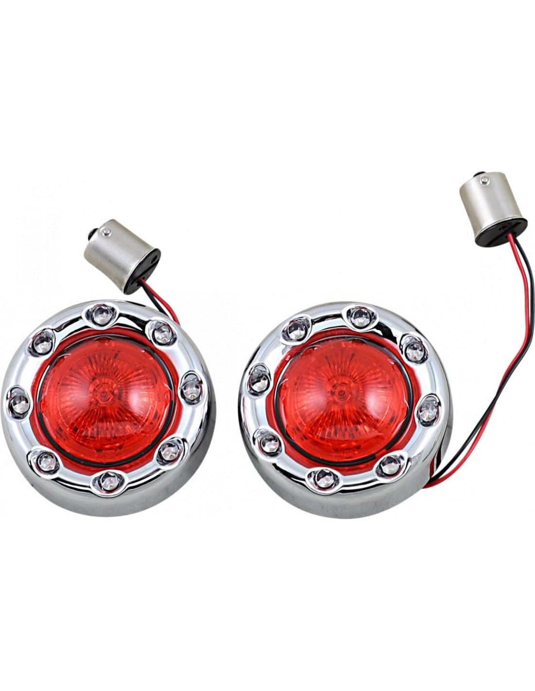 Custom DynamicsIndicatori di direzione posteriori 1156 bullet ringz™ probeam®i bullet ringz™ probeam® si fissano saldamente agli indicatori di direzione oem tramite linguette in metallo plug and play sui modelli harley-davidson® us con base a contatto singolo posteriori 1156 e lente oem bullet style