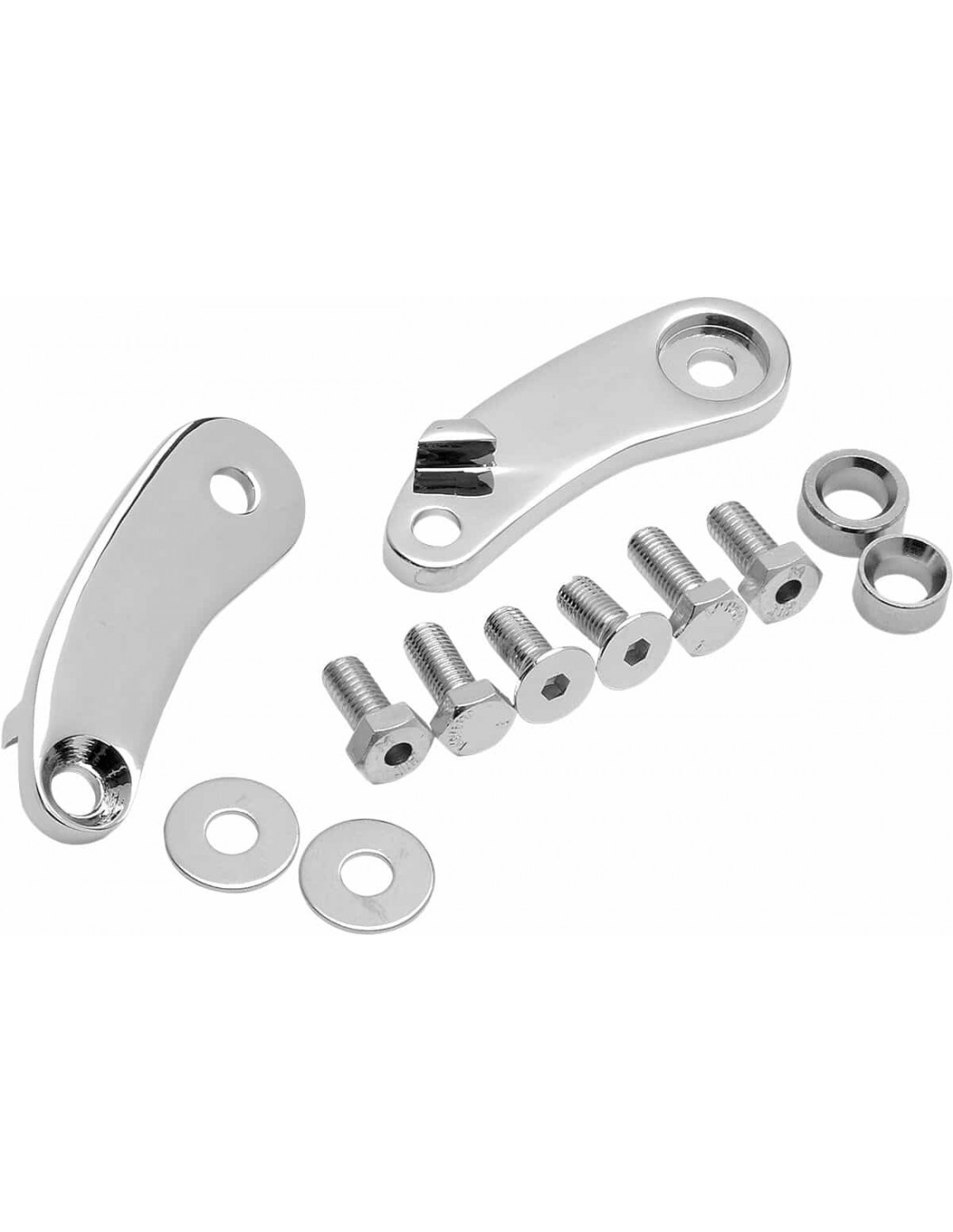 Drag SpecialtiesKit di riposizionamento indicatori di direzione anterioriIl kit sposta gli indicatori di direzione dal manubrio alla rigida forcella completa superiore Accoglie la maggior parte degli indicatori di direzione/delle luci di posizione di serie e dell'aftermarket Non utilizzabile con parabrezza montati sulla forcella.