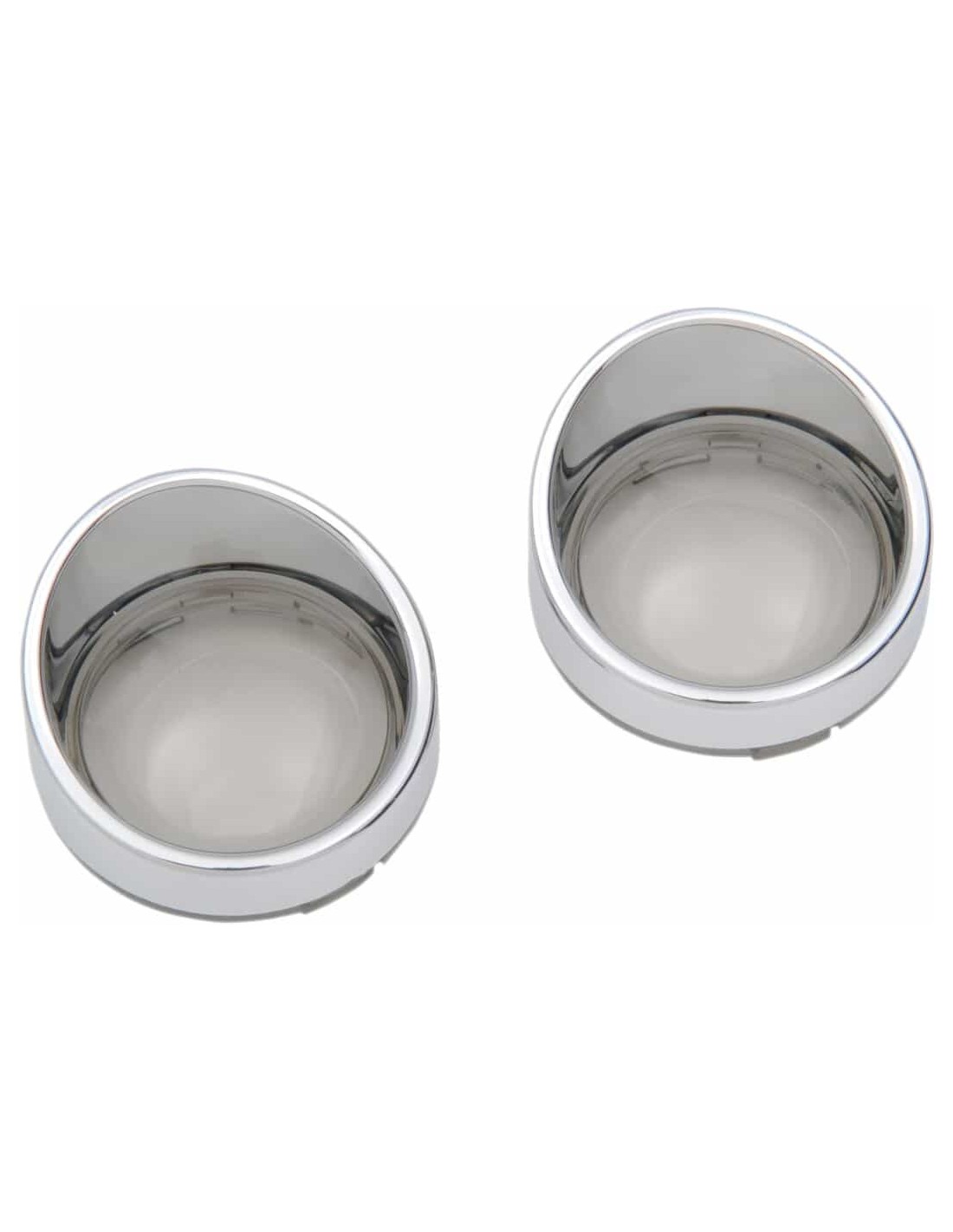 Drag SpecialtiesGhiera con visiera e lente per indicatori di direzione stile DeuceGhiere ABS cromate con visiera slash-cut Lampadine colorate non incluse con lente fumè; ordinare separatamente