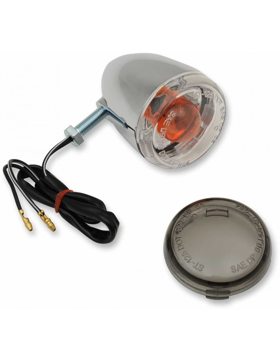 Drag SpecialtiesIndicatore di direzionePressofusi, cromati con lenti di diametro 2-3/8" Utilizzano una lampadina 1156 Gli indicatori posteriori utilizzano un bullone cavo da 5/16" e cablaggio nascosto