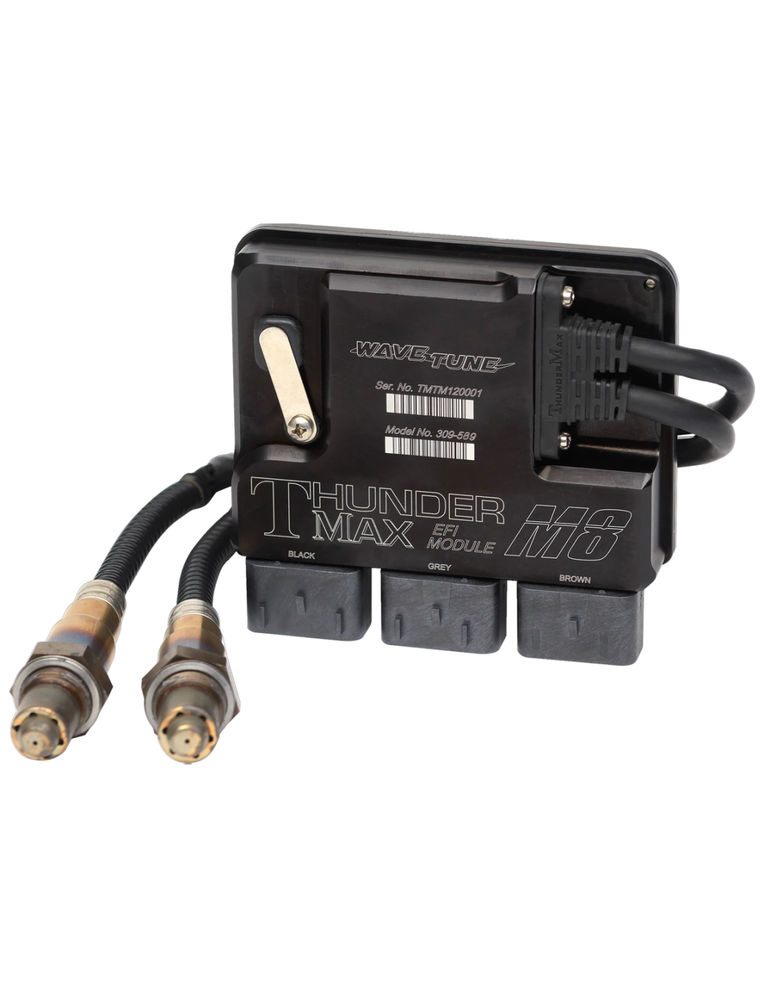 ThunderMaxThundermax dichiara di essere il più potente, sistema autoregolante di gestione del carburante specificatamente progettato per motociclette Harley-Davidson ad iniezione. Il sistema Thundermax EFI con AutoTune è stato progettato con lo scopo di fornire prestazioni senza compromessi. Lavora con ogni moto, non importa se completamente di serie, con scarichi performanti e/o filtri performanti o ogni altro tipo di modifca performante installato. La funzione di AutoTune regola automaticamente ogni modello Harley ad iniezione per ottenere le prestazioni migliori. È un sistema a larga banda ad anello chiuso, il che significa che regola continuamente il rapporto aria/benzina ogni volta che si usa la moto, senza badare alle modifiche o alle condizioni ambientali come temperatura o pressione atmosferica. Una volta installato ThunderMax con AutoTune regolerà la mappatura di base a seconda delle tue abitudini di guida automaticamente ogni volta che guiderai. Con la ThunderMax proverete partenze facili, un motore che gira bene, un aumento della risposta all'acceleratore, un aumento delle prestazioni a tutti i livelli senza sacrificare i consumi. Eliminerà anche scoppiettii, sputacchi e ritorni di fiamma per un miglior rumore di scarico. Vi dà anche la possibilità di regolare il minimo per un migliore raffreddamento del motore. La ThunderMax è un sistema che supera le prestazioni di tutti gli altri prodotti per la messa a punto delle iniezioni e viene fornito con 3 anni di garanzia. Nota: L'installazione di una ThunderMax richiede gli scarichi con porta per la sonda da 18mm come quello dei modelli dal 2007 al 2009 o la modifica degli scarichi di serie per accettare sonde O2 da 18 mm. p>