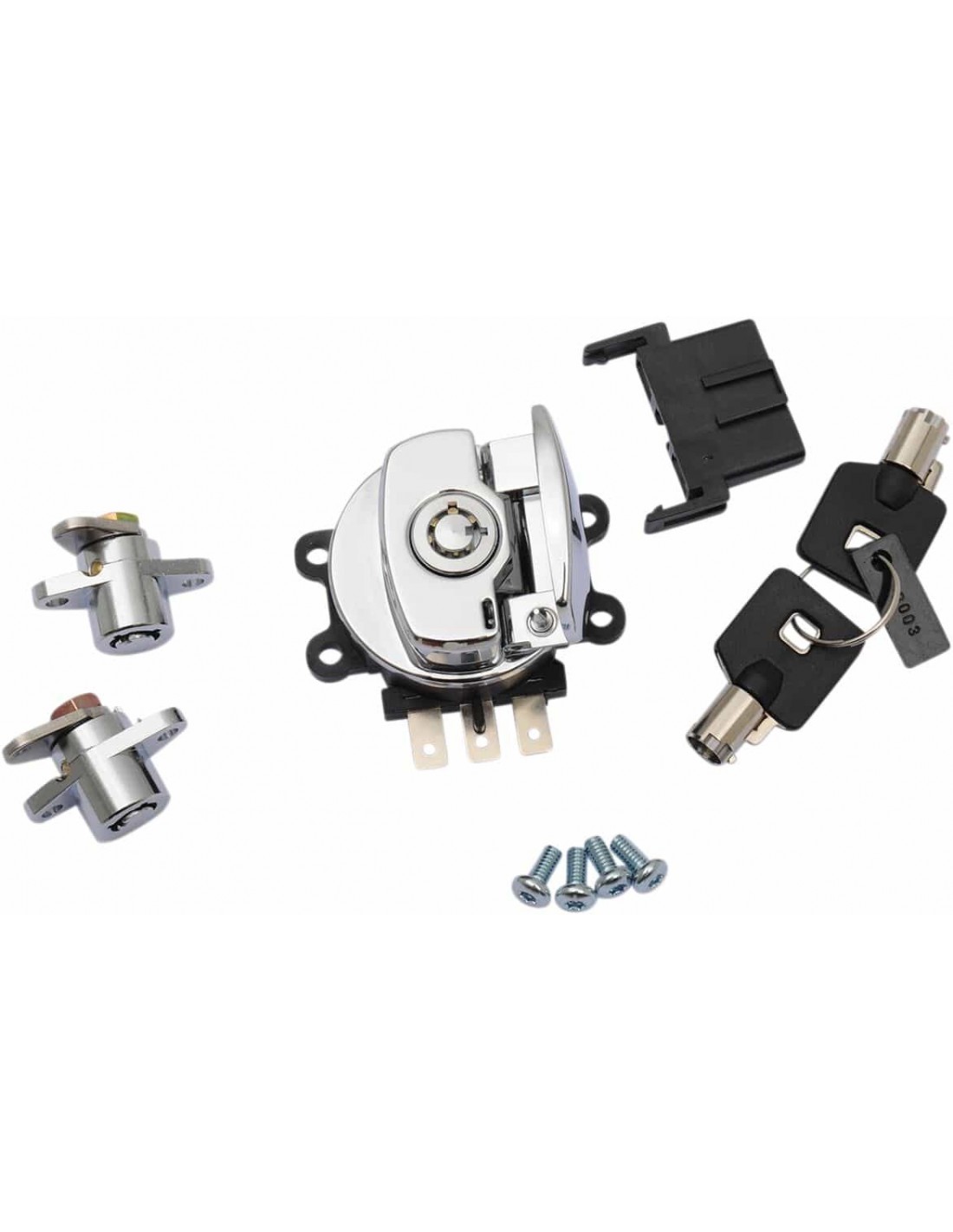 Drag SpecialtiesBlocchetto di accensione con attacco lateraleInclude due chiavi Lucchetto forcella disponibile separatamente Per modelli con borse laterali rigide.