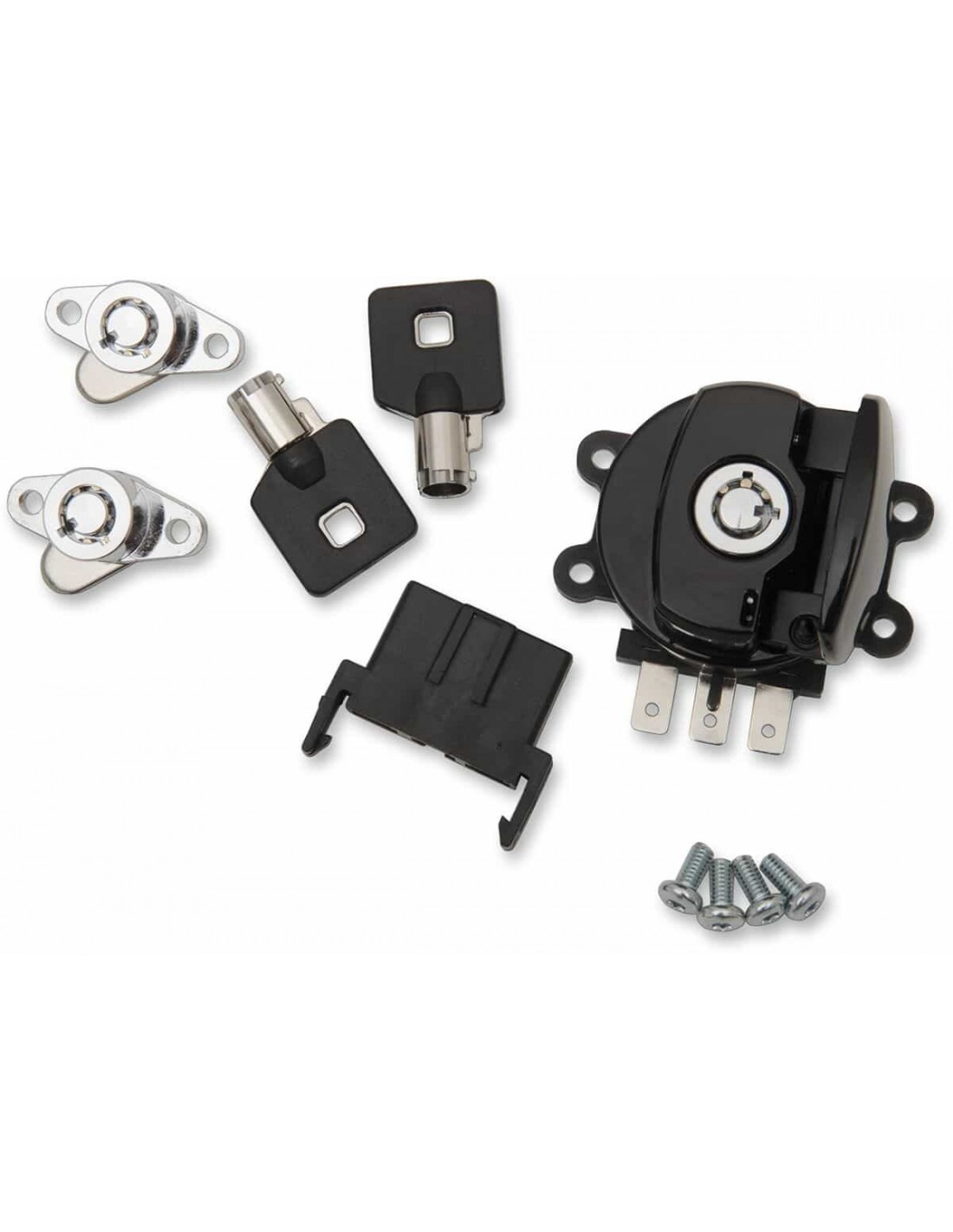 Drag SpecialtiesBlocchetto di accensione con attacco lateraleInclude due chiavi Lucchetto forcella disponibile separatamente Per modelli con borse laterali rigide.