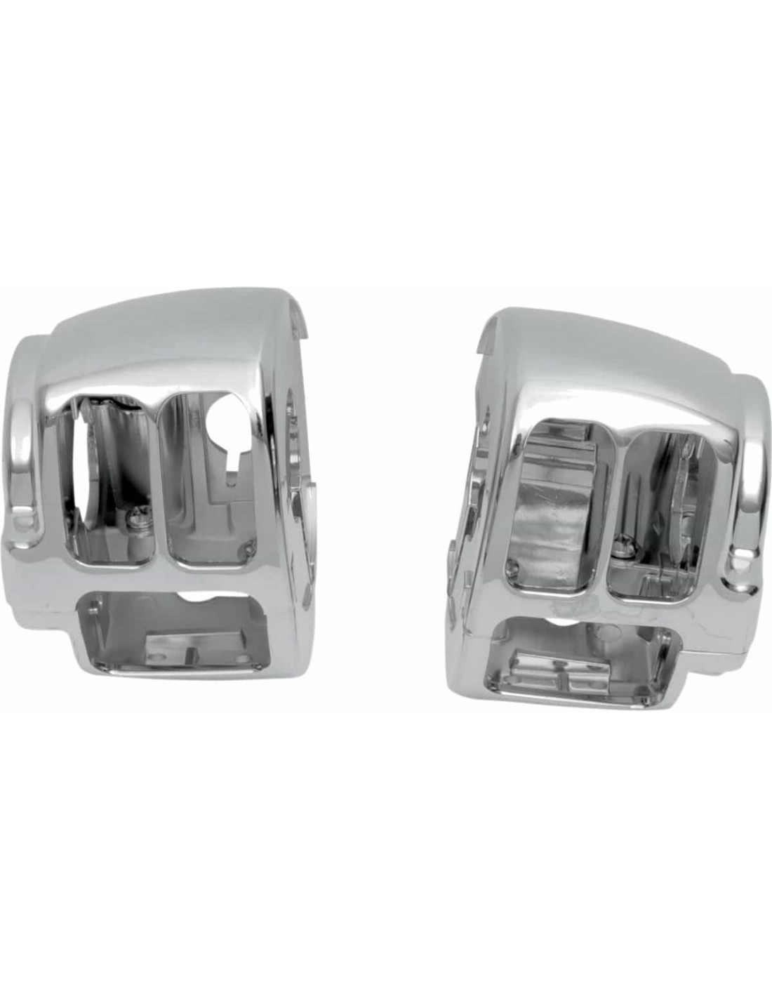 Kit alloggiamento interruttore manubrioCon comandi frizione e freno cromati Alloggiamenti per interruttori in alluminio pressofuso con bordi arrotondati, attacchi in stile OEM, parti superiori lisce e finitura cromata per un aspetto pulito Compatibili con cablaggio e interruttori in stile OEM Le pompe freno sono compatibili con i kit di riparazione in stile OEM e presentano lo spazio necessario per tutti i manubri di 1- 1/4” Interruttori disponibili separatamente I comandi freno/frizione e gli alloggiamenti per interruttori con attacchi in stile OEM sono venduti separatamente Attacchi interruttore cromati disponibili separatamente