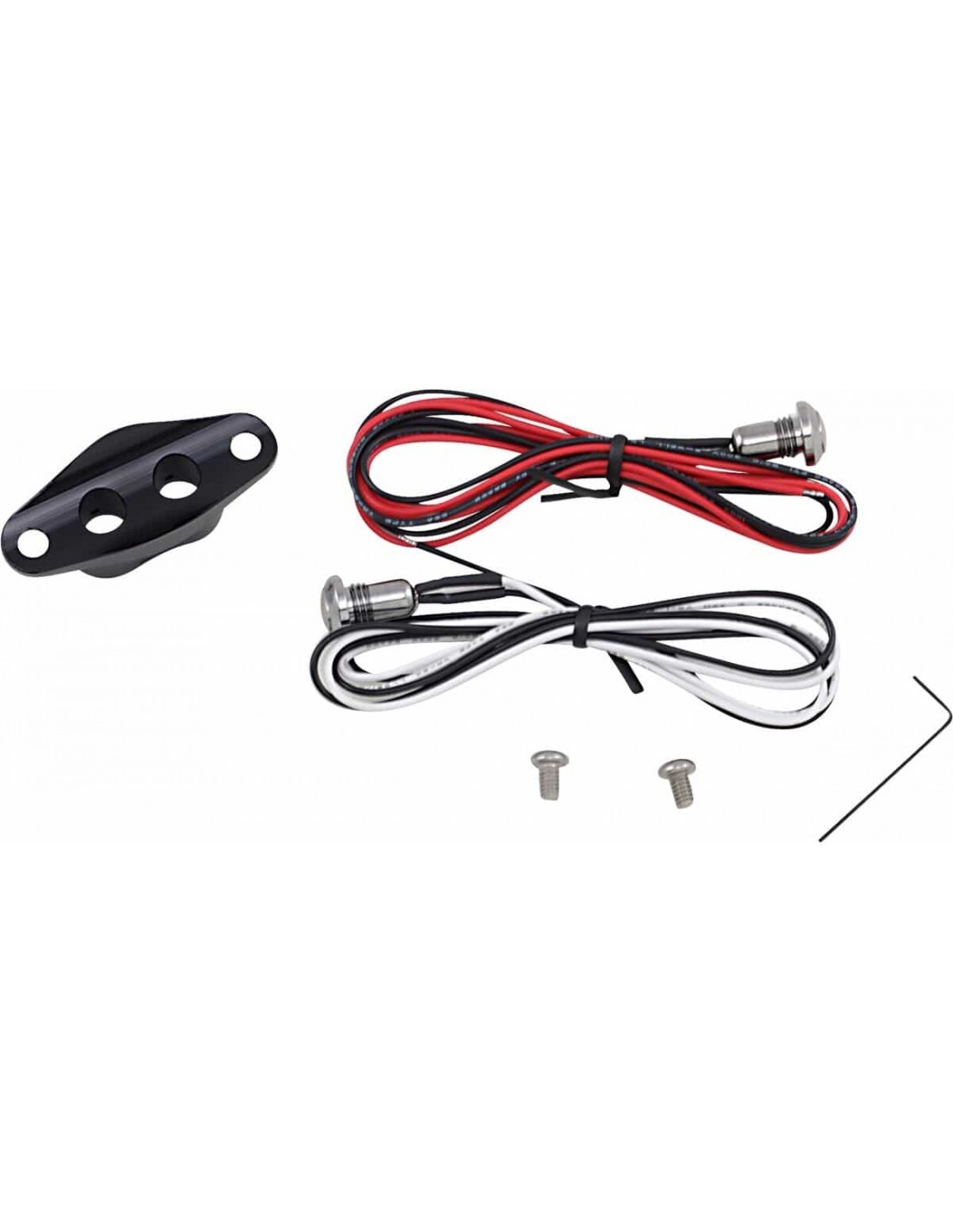 Drag SpecialtiesKit interruttore con doppio pulsante per manubrioAlloggiamento custom in alluminio billet tagliato a CNC Perfetto per applicazioni personalizzate o per aggiungere un tocco vintage o retrò < li>Il kit include due mini interruttori momentanei da 12V resistenti alle intemperie, cablaggio di colori diversi e materiali per il montaggio