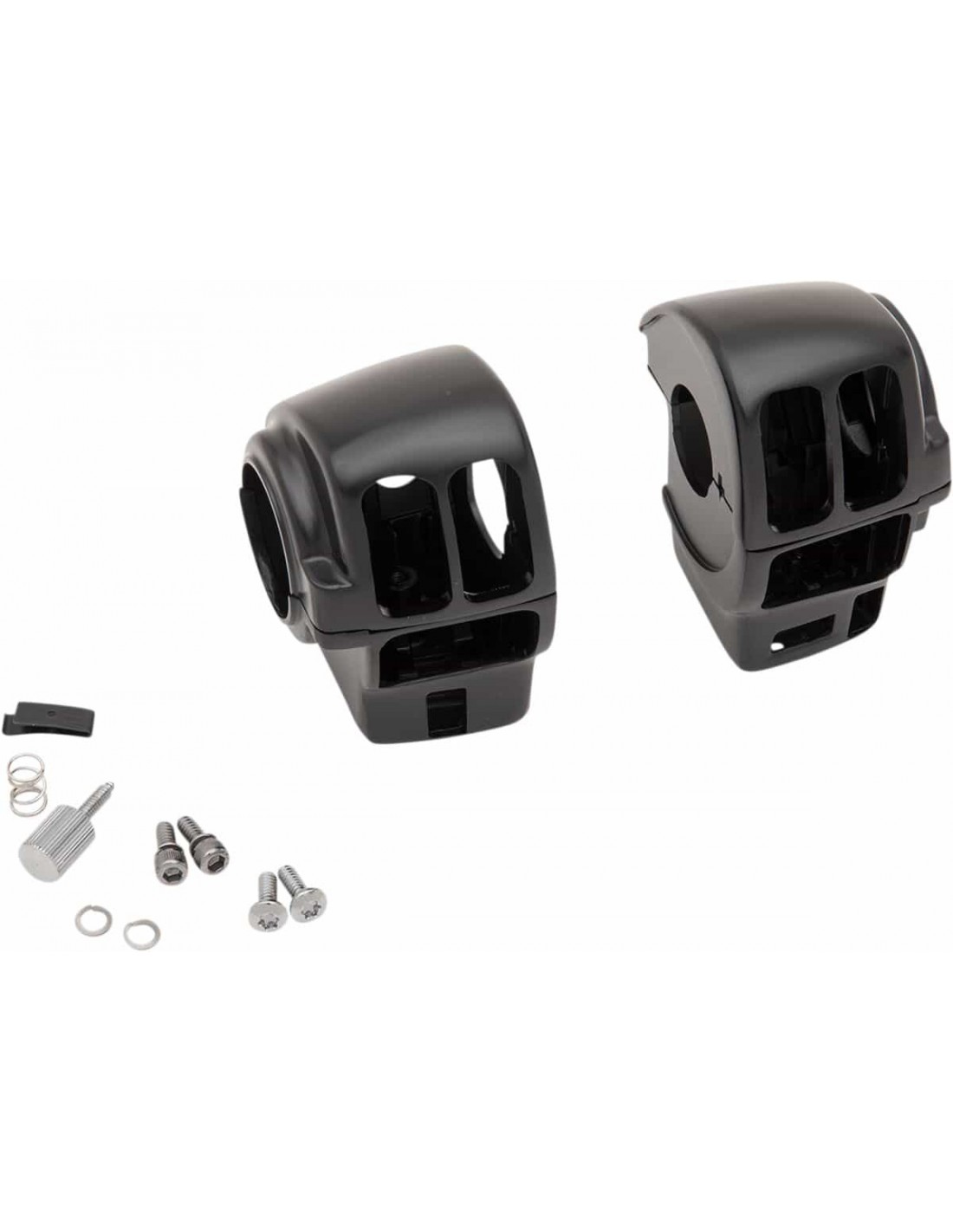 Kit alloggiamento interruttore manubrioCon comandi frizione e freno cromati Alloggiamenti per interruttori in alluminio pressofuso con bordi arrotondati, attacchi in stile OEM, parti superiori lisce e finitura cromata per un aspetto pulito Compatibili con cablaggio e interruttori in stile OEM Le pompe freno sono compatibili con i kit di riparazione in stile OEM e presentano lo spazio necessario per tutti i manubri di 1- 1/4” Interruttori disponibili separatamente I comandi freno/frizione e gli alloggiamenti per interruttori con attacchi in stile OEM sono venduti separatamente Attacchi interruttore cromati disponibili separatamente Per l'uso su modelli con radio e Cruise Control opzionale
