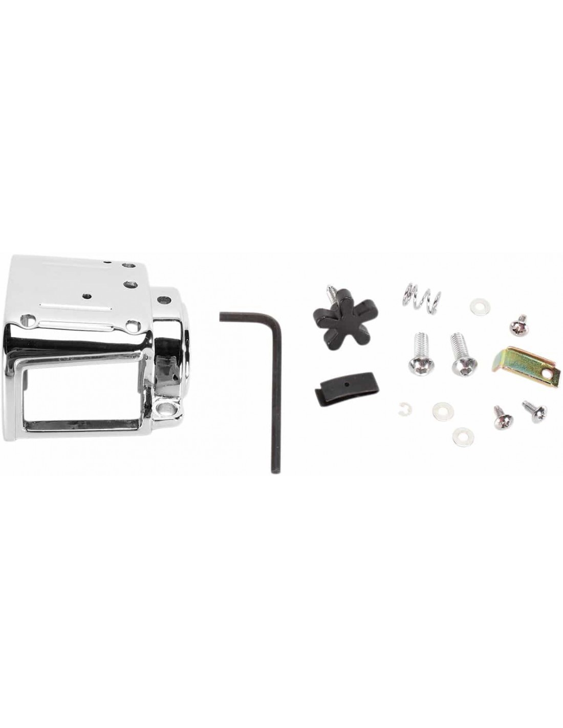 Kit alloggiamento interruttore manubrioCon comandi frizione e freno cromati Alloggiamenti per interruttori in alluminio pressofuso con bordi arrotondati, attacchi in stile OEM, parti superiori lisce e finitura cromata per un aspetto pulito Compatibili con cablaggio e interruttori in stile OEM Le pompe freno sono compatibili con i kit di riparazione in stile OEM e presentano lo spazio necessario per tutti i manubri di 1- 1/4” Interruttori disponibili separatamente I comandi freno/frizione e gli alloggiamenti per interruttori con attacchi in stile OEM sono venduti separatamente Attacchi interruttore cromati disponibili separatamente
