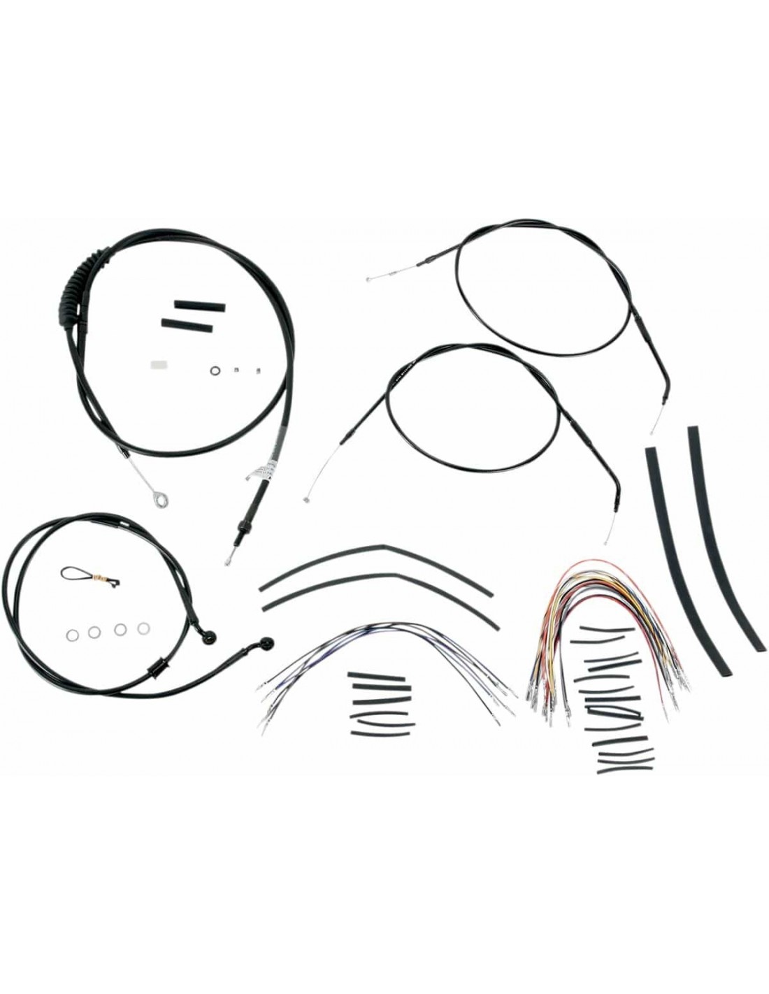 Burly BrandKit tubo/cavo manubrio completo in vinile per manubri Ape HangerKit di installazione completo per Burly Ape HangerI kit includono tubo freno prolungato, cavo/tubo frizione prolungato , cavi comando gas di andata/ritorno prolungati come richiesto e tutto il cablaggio necessarioI tubi freno, se inclusi, presentano un rivestimento interno in PTFE e una treccia esterna in acciaio inossidabile resistenteI kit Dresser riutilizzano il cablaggio Ride-By-Wire di serieI kit si basano sull'utilizzo di rialzi da 2” con manubri in stile Ape HangerInclude tubo freno a disco singolo esteso in treccia metallica, cavo frizione estesa, cavi comando gas estesi e tutto il cablaggio necessario
