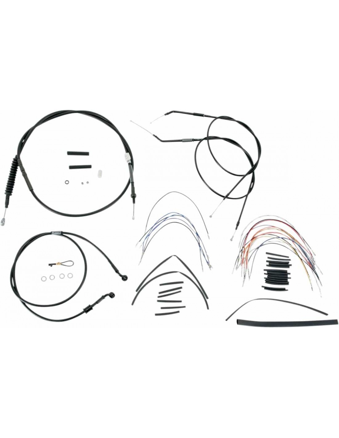 Burly BrandKit tubo/cavo manubrio completo in vinile per manubri Ape HangerKit di installazione completo per Burly Ape HangerI kit includono tubo freno prolungato, cavo/tubo frizione prolungato , cavi comando gas di andata/ritorno prolungati come richiesto e tutto il cablaggio necessarioI tubi freno, se inclusi, presentano un rivestimento interno in PTFE e una treccia esterna in acciaio inossidabile resistenteI kit Dresser riutilizzano il cablaggio Ride-By-Wire di serieI kit si basano sull'utilizzo di rialzi da 2” con manubri in stile Ape HangerInclude tubo freno a disco singolo esteso in treccia metallica, cavo frizione estesa, cavi comando gas estesi e tutto il cablaggio necessario