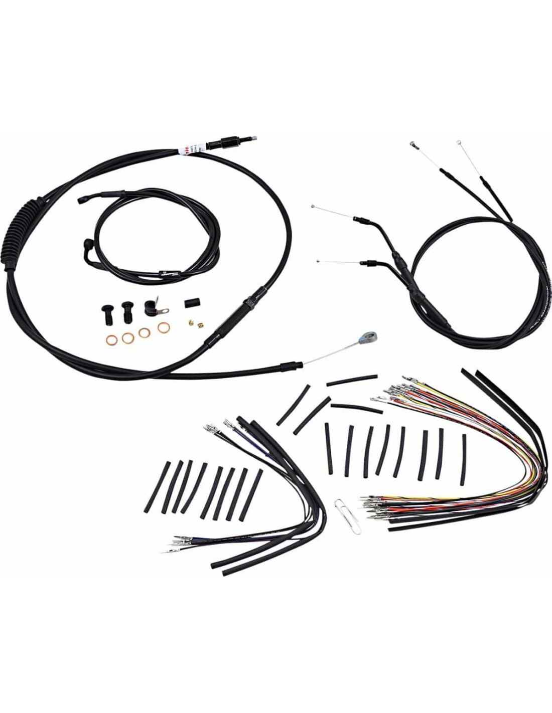 Burly BrandKit tubo/cavo manubrio completo in vinile per manubri Ape HangerKit di installazione completo per Burly Ape Hanger I kit includono tubo freno prolungato, cavo/tubo frizione prolungato , cavi comando gas di andata/ritorno prolungati come richiesto e tutto il cablaggio necessario I tubi freno, se inclusi, presentano un rivestimento interno in PTFE e una treccia esterna in acciaio inossidabile resistente I kit Dresser riutilizzano il cablaggio Ride-By-Wire di serie I kit si basano sull'utilizzo di rialzi da 2” con manubri in stile Ape Hanger Include tubo freno a disco singolo esteso in treccia metallica, cavo frizione estesa, cavi comando gas estesi e tutto il cablaggio necessario