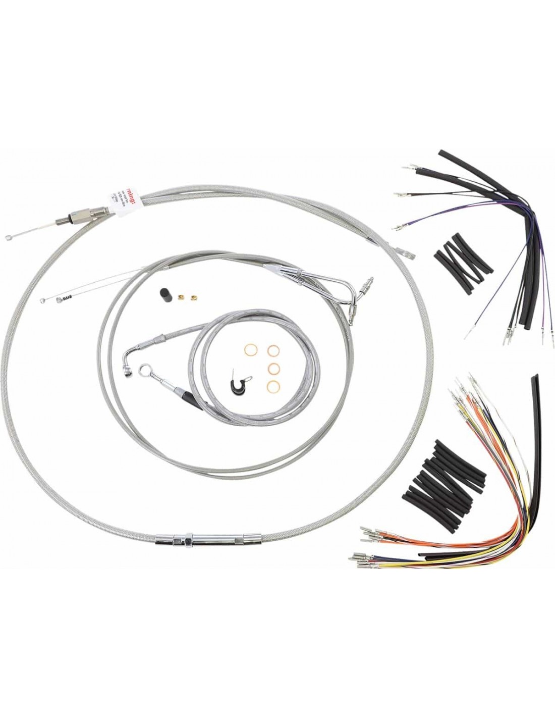 Burly BrandKit tubo freno/cavo manubrio intrecciato in acciaio inossidabile completoKit di installazione completo per Burly Ape Hanger I kit includono tubo freno prolungato, cavo/tubo frizione prolungato, cavi di comando/chiusura gas prolungati come richiesto e tutto il cablaggio necessario I tubi freno presentano un rivestimento interno in PTFE e una treccia esterna in acciaio inossidabile resistente I kit Dresser riutilizzano il cablaggio Ride-By-Wire di serie I kit si basano sull'utilizzo di rialzi da 2” con manubri in stile Ape Hanger